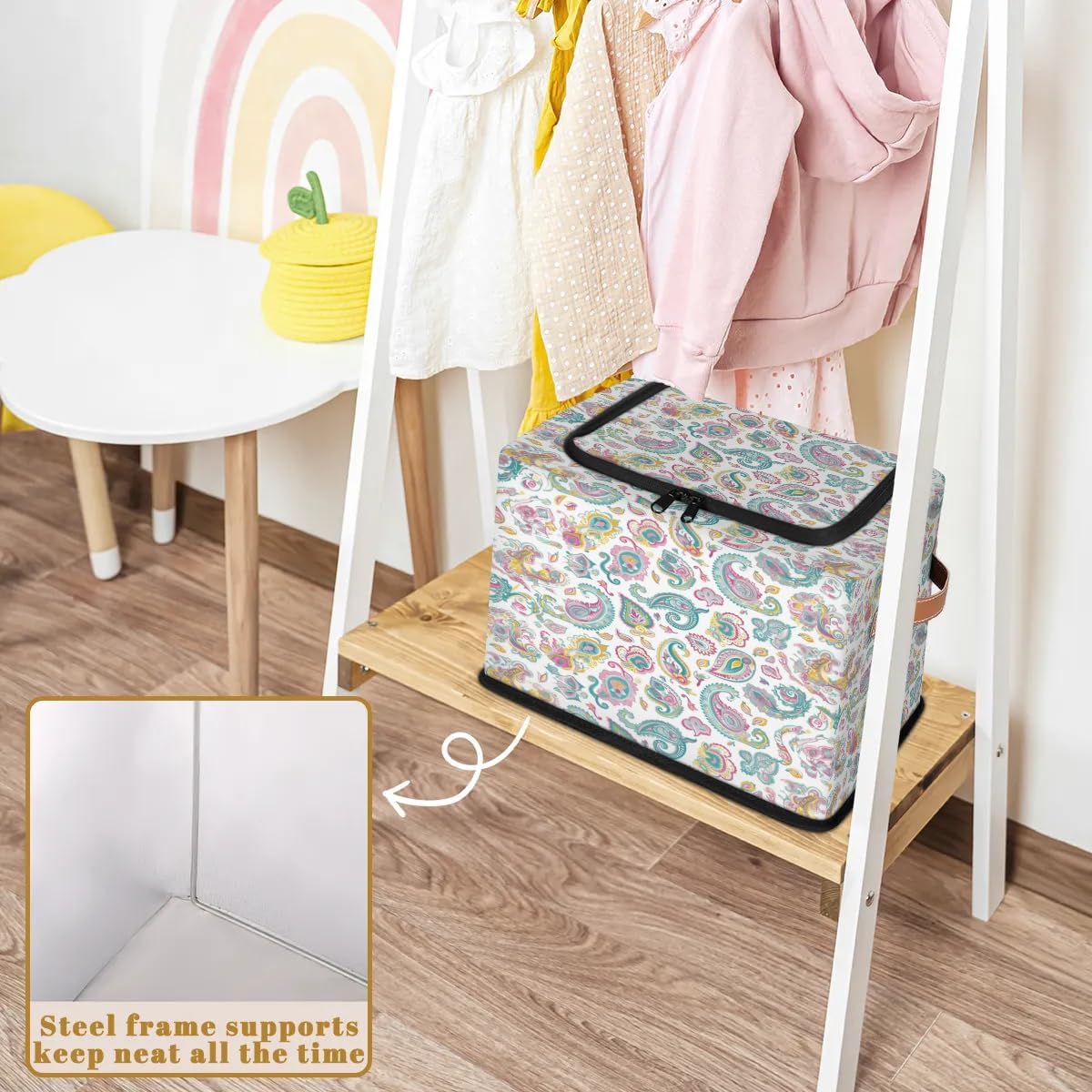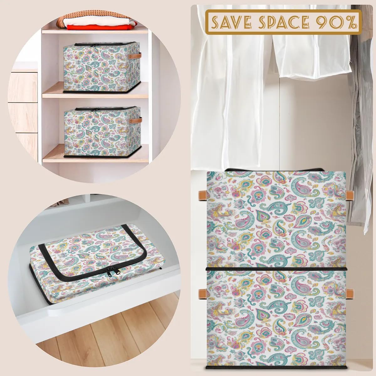 Large Capacity: storage bag size 14.2 x 10.2 x 10 in, Large capacity storage bins can store clothes, pillows, sheets, towels and other household items, Keep your belongings organized and easy to find!Material: Made of polyester with a leather handle, the storage box is waterproof, lightweight, colorfast, sturdy and easy to care for. 2 packStorage Bins with Zipper Lid: The storage box with zippered lid is designed to keep items from falling apart and keep your belongings protected from water and dust.Portable Collapsible: The organizer basket is surrounded by a fixable wire frame, movable frame, foldable design for easy storage, and the storage box can be easily folded to save space when not in use.Multi-purpose Storage Box: The storage bins are perfect for kitchens, living rooms, bathrooms, closets, game rooms and cars, college dorms, campers, apartments, hotels, baby nurseries and more.Care Approach: Hand wash only. Not machine washable. You can take a damp cloth or sponge to wipe the stained area. If there are more obvious stains, a little soap and water can be used to remove the stains, taking care to clean the soap. Air dry naturally after washing. Do not bleach. Do not scrub the basket vigorously with brushes or the like.