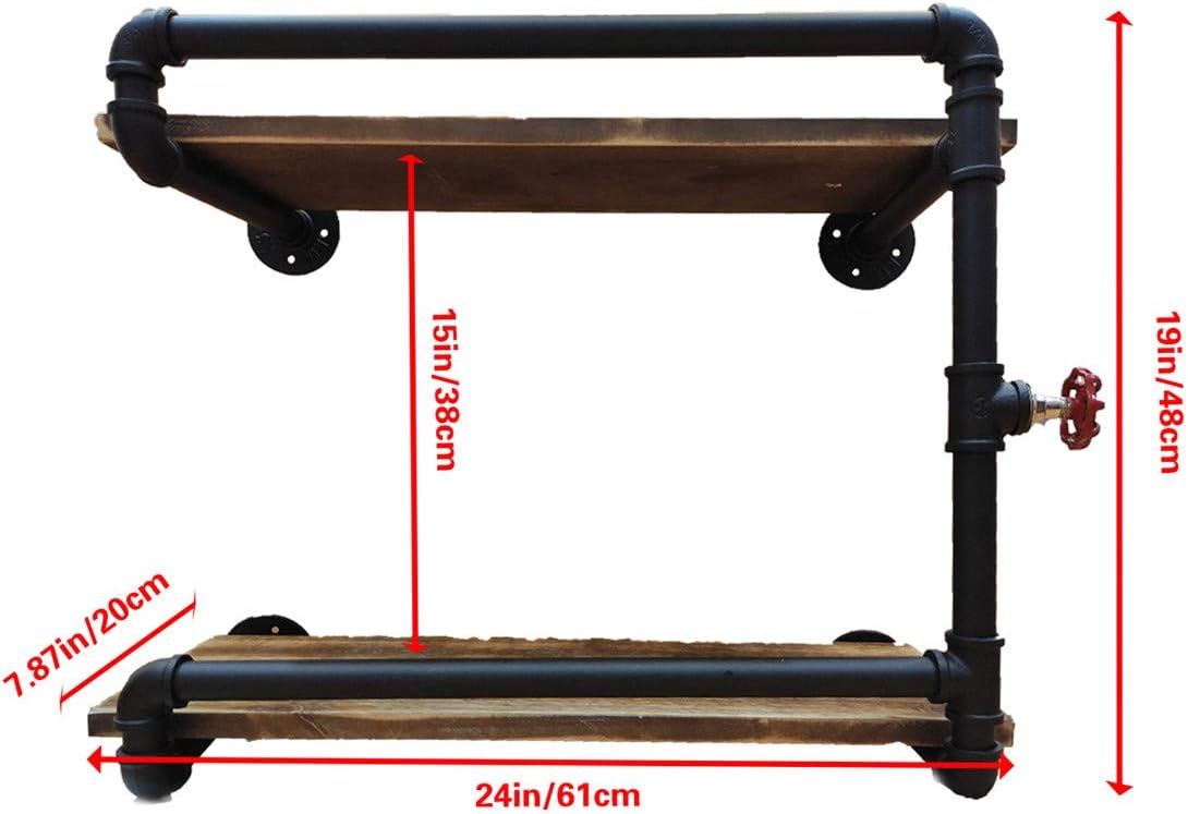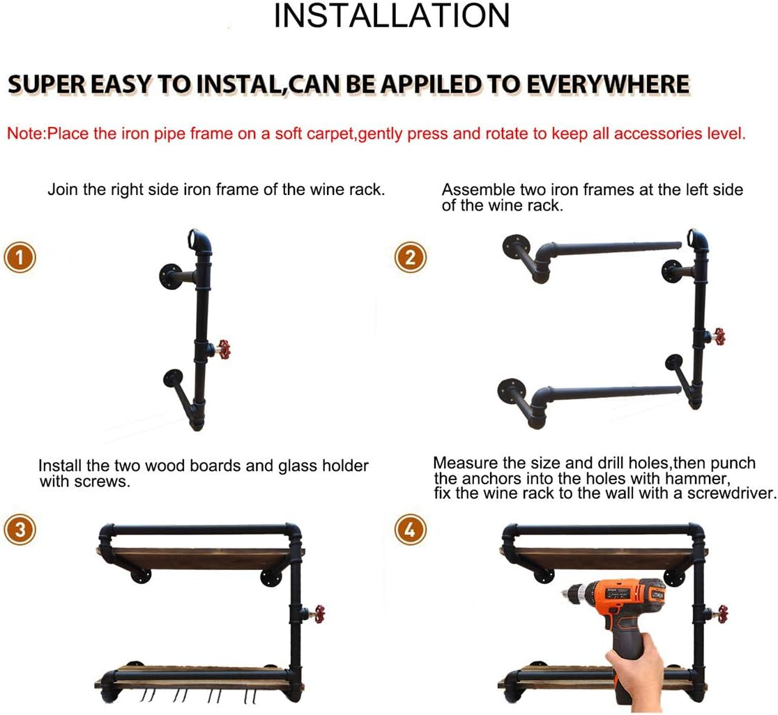 Features: Industrial Style:This wine rack consists of Industrial iron pipe and baking varnish real pine wood. Suitable for decorating the retro home style. Space Saver: The 2-shelf design increases storage space.Space-saving way to store wine and stemware with integrated storage shelf. Application:This wine rack is perfect for the kitchen/living room/dining room,and it is also a gift for wine lovers Specification: Color:classic matte black Material:metal, wood Overall Dimensions:Width 24" x Height 19" x Depth 7.87" Planks size:Width 24" x Height 0.79" x Depth 7.87" Distance between shelves:15" Type:Industrial Pipe Installation: Screw Embedded Package Included: 1 x Iron pipe wine rack 2 x Board Enough screws Notes: 1. Due to the different monitor and light effect, the actual color of the item might be slightly different from the color showed on the pictures. 2. Please allow 1-2cm measuring deviation due to manual measurement