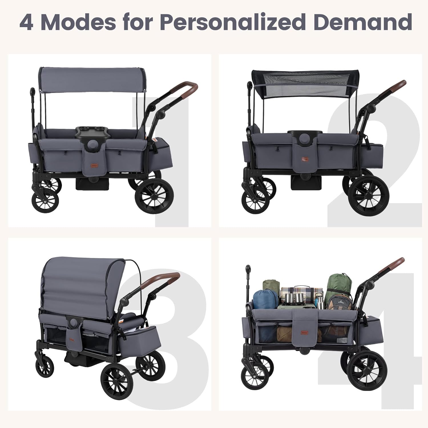 Picture a sunny family adventure with your perfect stroller wagon! As the path slopes upward, Mom effortlessly pulls the toddler wagon using the adjustable tow bar. At the picnic site, the removable canopy with UPF protection creates a safe shade, shielding everyone under the bright sky. Whether on grassy fields, gravel paths, or paved sidewalks, the all-terrain tires and smooth suspension ensure every ride is steady and comfy—for both your precious cargo and your peace of mind.