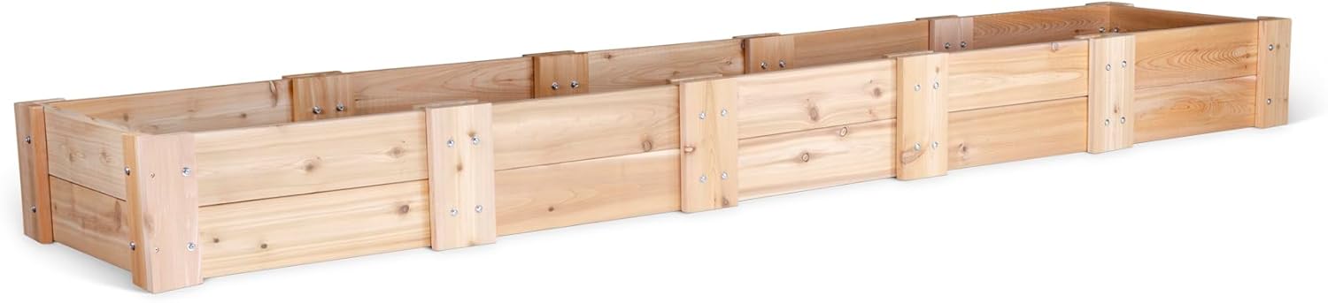 Create a bountiful veggie garden or a border flower garden with the Infinite Cedar Raised Garden Bed This durable garden bed is crafted of Western red cedar which is naturally weather resistant and doesnt contain any chemicals You can place this garden bed where itll get the sun or shade it needs and where its easy for you to access plus it is easy to assemble and comes with all the required hardware This garden bed offers a contained and more organized gardening space this raised garden bed helps to produces higher yields and lessens the amount of digging and weeding youll need to do This garden bed is a premium quality product made in the USA It can be stained or painted in any shade you like or left unfinished for a natural look Ideal for most plants these 11 deep beds also create attractive focal points in the garden This garden bed is a show piece all by itself Sure to please Features. 165 deep to accommodate large deeprooted plants. Soil Capacity 20 cu ft and total growing area of about 24 square feet. Strong Quality build 1 thick premium quality deck boards combined with strong joint design will not bow under the weight of wet soil and will last for years. This product uses over 75 lbs of cedar deck boards. Easy Assembly and can be easily disassembled as needed. All hardware is included. 100 Natural 1 Inch Thick Weather Resistant Western Red Cedar Deck Board Construction no composites. No harmful chemicals or residues to worry about. Superior Quality Product Made in the USA. 5 Year Warranty. Can be stained painted or left unfinished for a natural lookSpecifications. Dimension 2 ft x 12 ft x 11 in H. Weight 87 lbs