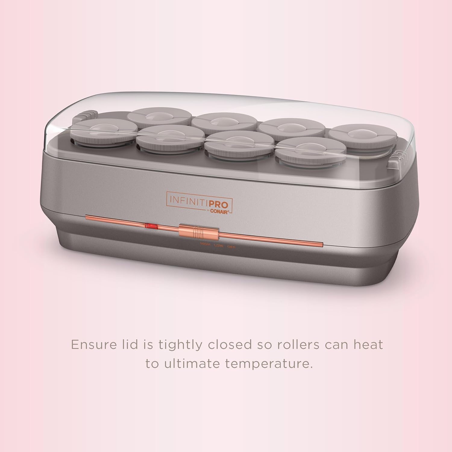 Less frizz. More body. Perfect curls. Get it all, quickly and easily, with the 8 Volume & Shine Rollers from the InfinitiPRO by Conair Luxe Series. This innovative set of hot rollers is equipped with a true ionic generator that banishes frizz and seals in moisture for silky, smooth, healthy-looking results. Perfect for forming loose, flowing curls and waves, the two-inch-diameter jumbo rollers are specially designed for maximum comfort and control and come with easy-to-use plastic super clips to hold and set your style. Choose from 2 settings to customize heat for your hair type. The ceramic-flocked rollers heat up in just 85 seconds with even heat for consistent curling from start to finish. Salon results at home made easy!