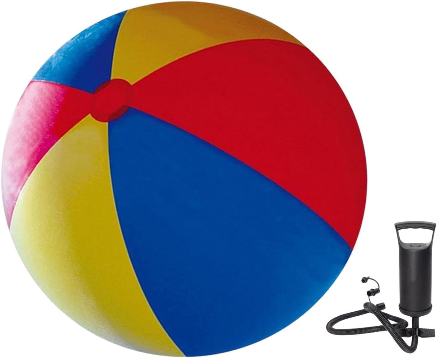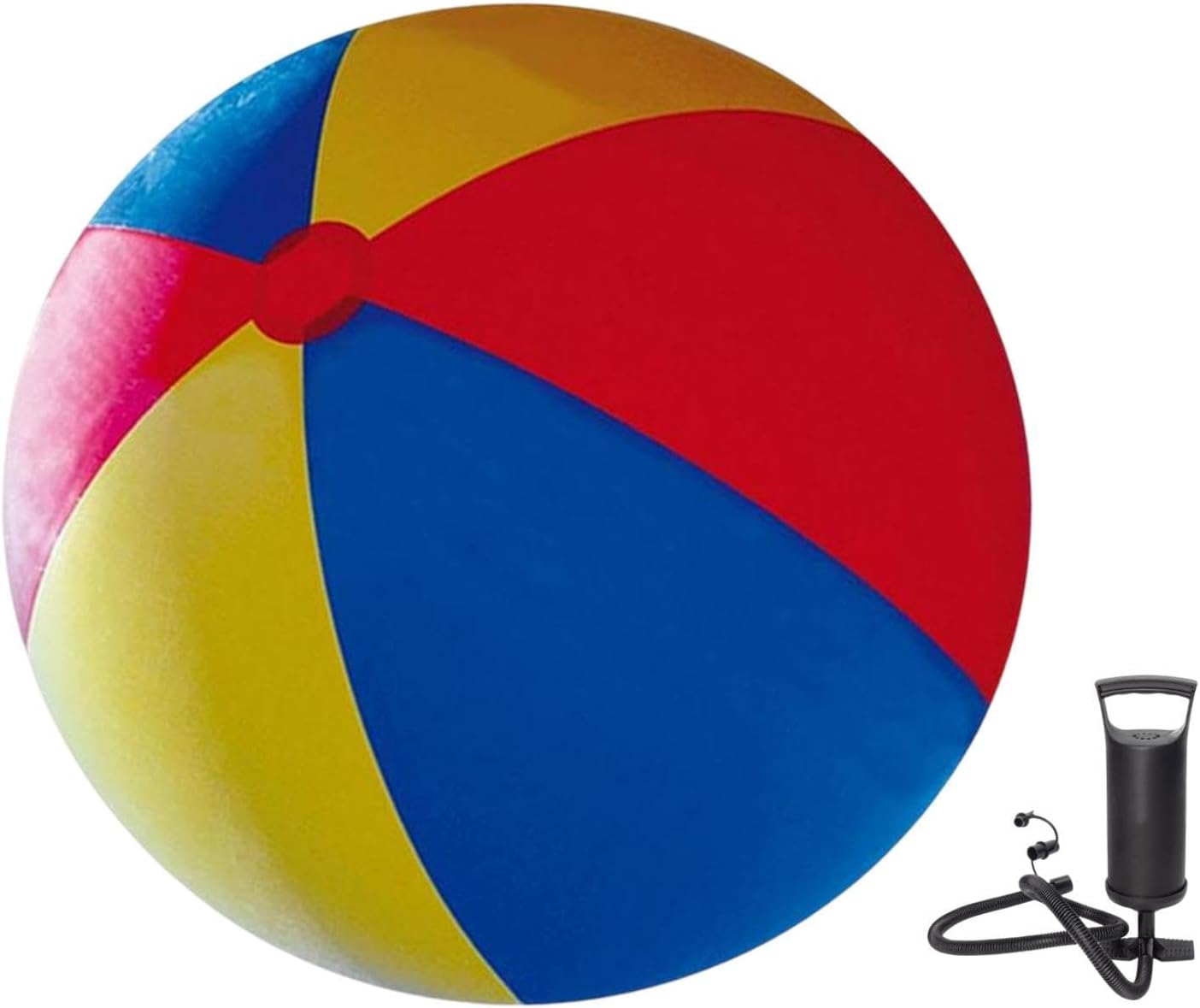 Description: - 【Material】: This Inflatable Beach Ball is crafted from quality PVC, sturdy and wear resistant, allowing for long term repeated use - 【Large Size for Maximum Fun】: This oversized beach ball is ideal for outdoor activities, providing endless entertainment at the beach or in your backyard parties and lawn activities - 【Convenient Hand Pump Included】: The package includes 1 hand pump that makes inflating the ball quick and effortless, allowing you to enjoy more play time with less hassle - 【Bright Tri Color Design】: Featuring bright red, yellow, and blue colors, this inflatable ball adds a lively touch to any event or gathering, making it ideal for pool parties and family outings - 【Portable and Easy to Carry】: This Water Beach Ball Toy is designed with convenience in mind, this inflatable beach ball can be easily deflated and packed away for travel or storageSpecification: - Material: PVC materialSize Chart:Air Pump 10cmx29cm/3.94inchx11.42inchPackage Includes:1 Inflatable Beach Ball1 Hand PumpNote:Please allow slightly errors 1-2cm/0.39-0.79inch differences due to manual measurement.