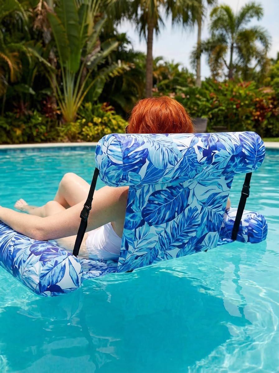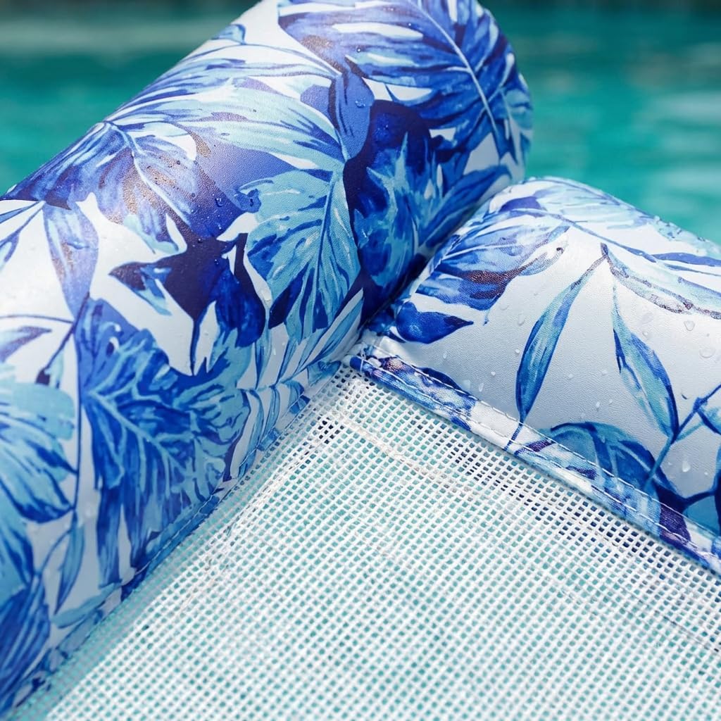 Inflatable Pool Float for Adults, Tropical Leaf Floating Lounge Chair with Mesh Sling for Lake, Beach & Pool Parties