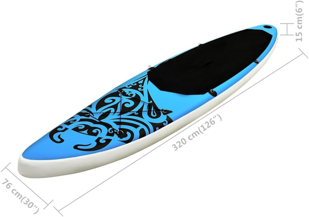 The SUP board is ideal for learning, recreational paddling, and small wave riding with comfort and stability. It can also be used as a paddleboard or kayak from beginner to advanced stand up paddling riders.This SUP board is designed with a great level of curve, enhancing its rigidity for a more stable ride. This board glides effortlessly through flat waters and rides smoothly in the surf. The inflatable SUP board is puncture-proof and UV proof. Equipped with special high-pressure screw valves, it is easy and quick to inflate and deflate. The removable fin is durable to withstand the pressures of paddling. The non-slip traction pad goes towards the grip on the board. A practical carrying bag is also included for easy and fast transport.Please note that this is designed for adults.Color: BlueMaterial: PVC, EVA, aluminumInflated dimensions: 120.1" x 29.9" x 5.9" (L x W x H)Maximum number of persons: 1 adultMaximum load capacity: 308.6 lbMaximum working pressure: 0.8 bar (12 psi)Puncture-proof and UV proofDelivery contains:1 x SUP board1 x Aluminum oar1 x Removable fin1 x High pressure hand pump with high pressure gauge1 x Repair kit1 x Leash1 x Carrying bagCalifornia Proposition 65