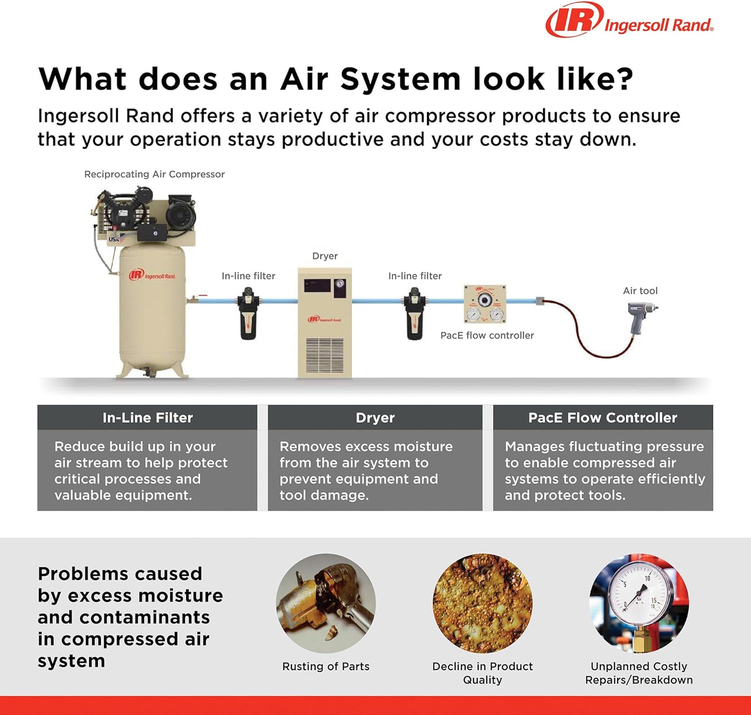 Protect your business from unproductive and expensive downtime! The Ingersoll Rand Duplex Reciprocating Compressor offers two individual 2-stage pumps and two motors mounted on a single 120-gallon horizontal tank, providing 100% built-in backup (you'll have a motor and pump running even when one is down) or additional air power for large-capacity jobs. Features the legendary T30 pump with value-added features in a space-saving design. 175 max. PSI, 230V, three-phase. Requires two Ingersoll Rand 2yr Warranty Start-up kits, Item# 6131984 (sold separately).