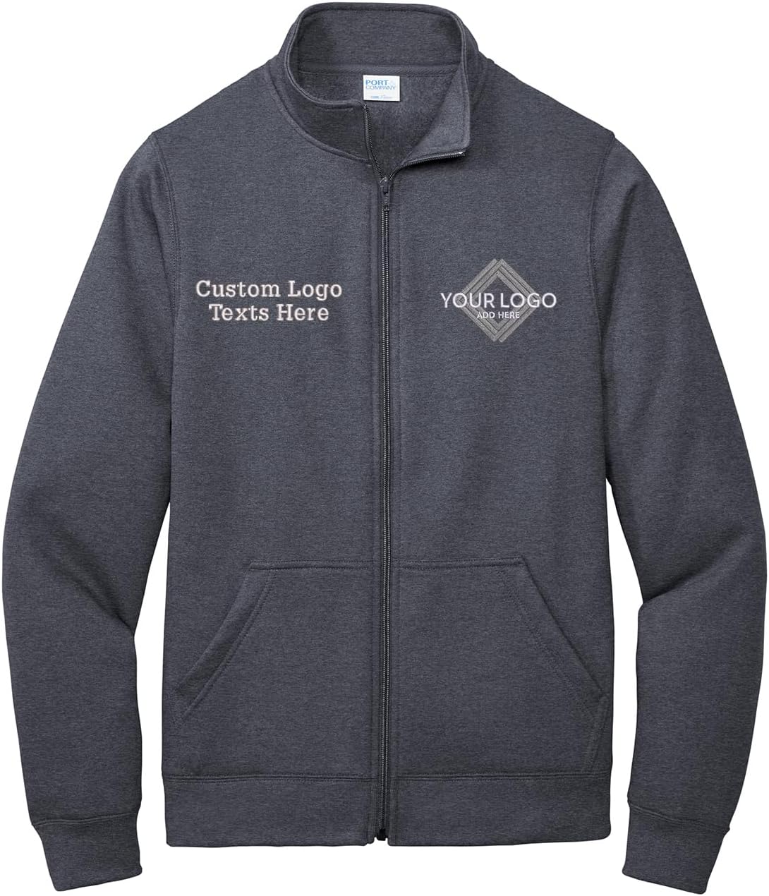 Core fleece cadet full zip up jackets with custom embroidery logo texts