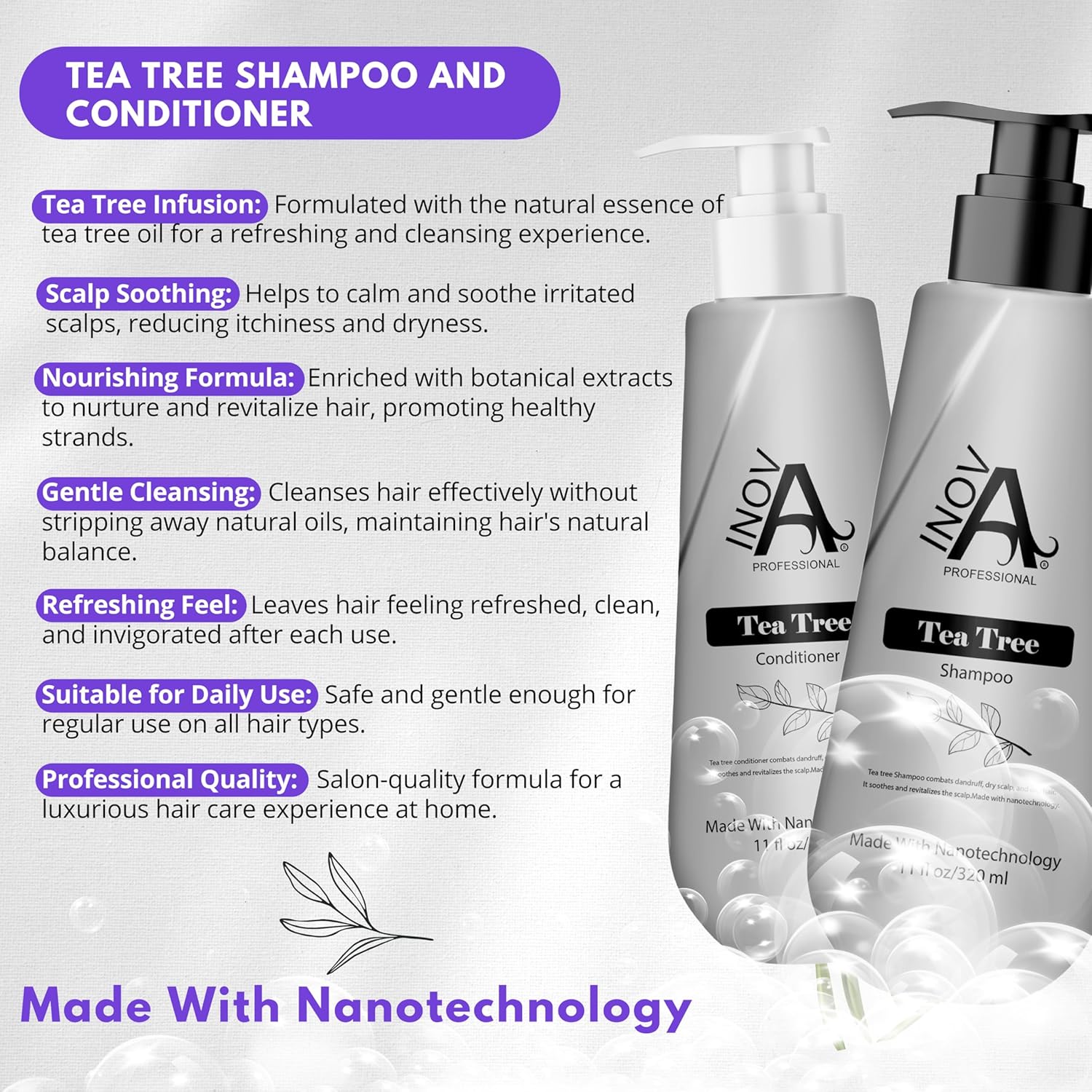 Indulge in the revitalizing freshness of Inova Professional Tea Tree Shampoo and Conditioner. Crafted with the natural essence of tea tree oil, this dynamic duo offers a luxurious cleansing and nourishing experience for your hair. Soothing the scalp while promoting healthy hair growth, this set is meticulously formulated to leave your locks feeling refreshed and rejuvenated.
