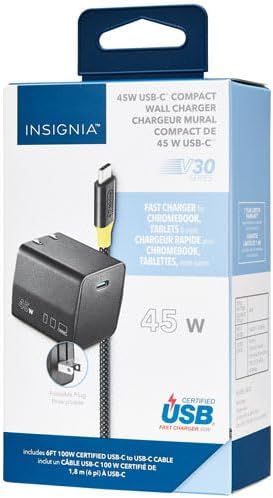 The Insignia 45W USB-C Wall Accessory with USB-C Cable offers a convenient and compact way to support a wide range of USB-C devices, including phones, tablets, and laptops. Designed for everyday use at home, in the office, or while traveling, this accessory provides a dependable connection point in a streamlined form factor. The included USB-C cable adds extra convenience, giving you a ready-to-use setup right out of the box. Its slim, low-profile design fits neatly against the wall and easily packs into bags or backpacks, while the sturdy build ensures consistent performance with frequent use. With broad USB-C compatibility and a practical all-in-one design, this accessory is a versatile addition to any setup—ideal for desktops, nightstands, travel kits, or shared spaces.
