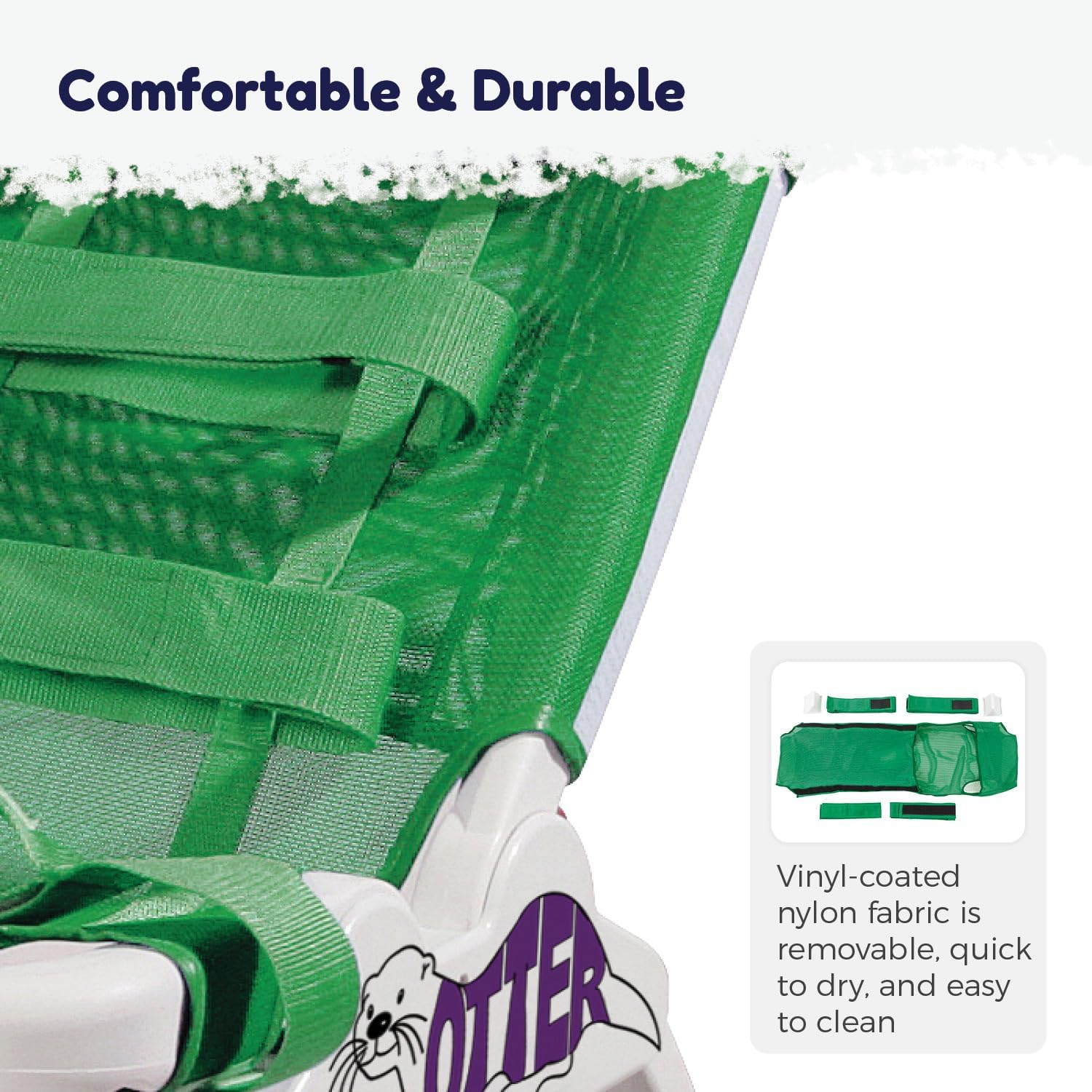 The Otter Pediatric bathing chair provides support and safety for children while bathing. The pediatric bath chair has an angle-adjustable seat and backrest adjustable to angles of 0, 22.2, 45, 67.5, and 90 degree to accommodate each individual's positioning needs. The legs of the shower chair are slip-resistant for safety and can raise the chair an additional 7 inches. The tub chair has height and width adjustable lateral supports that can be used for positioning the head or trunk. When the chair is not in use, it can be folded flat for easy and compact storage.