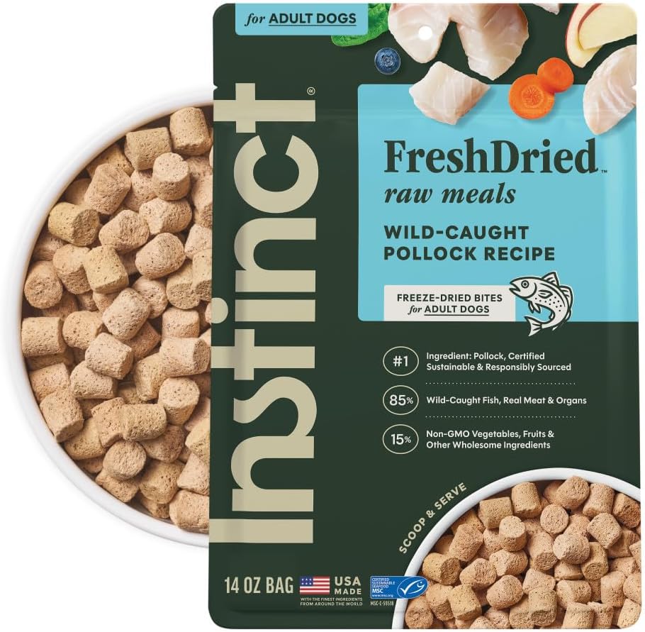 Instinct FreshDried Meals Grain-Free Beef Recipe is a healthy dog food that provides a superior alternative to traditional kibble. Featuring 3x more real meat and nutrient-rich organs than Instinct Original Kibble, this raw dog food delivers complete, balanced nutrition for a happier, healthier pup. Unlike traditional kibble, our FreshDried recipes are never cooked. Raw, whole‑food ingredients are cold‑pressured to ensure safety and quality, then gently freeze‑dried to preserve nutritional integrity and lock in natural flavor. The result is freeze-dried raw dog food that is complete and balanced in a convenient, shelf‑stable form. This freeze-dried food supports lean muscles, digestion, and vibrant skin and coat and is made without grains, corn, wheat, soy, legumes, or artificial colors or preservatives. Proudly made in the USA, Instinct dog food uses the finest ingredients from around the world to deliver complete, balanced nutrition in every bowl.