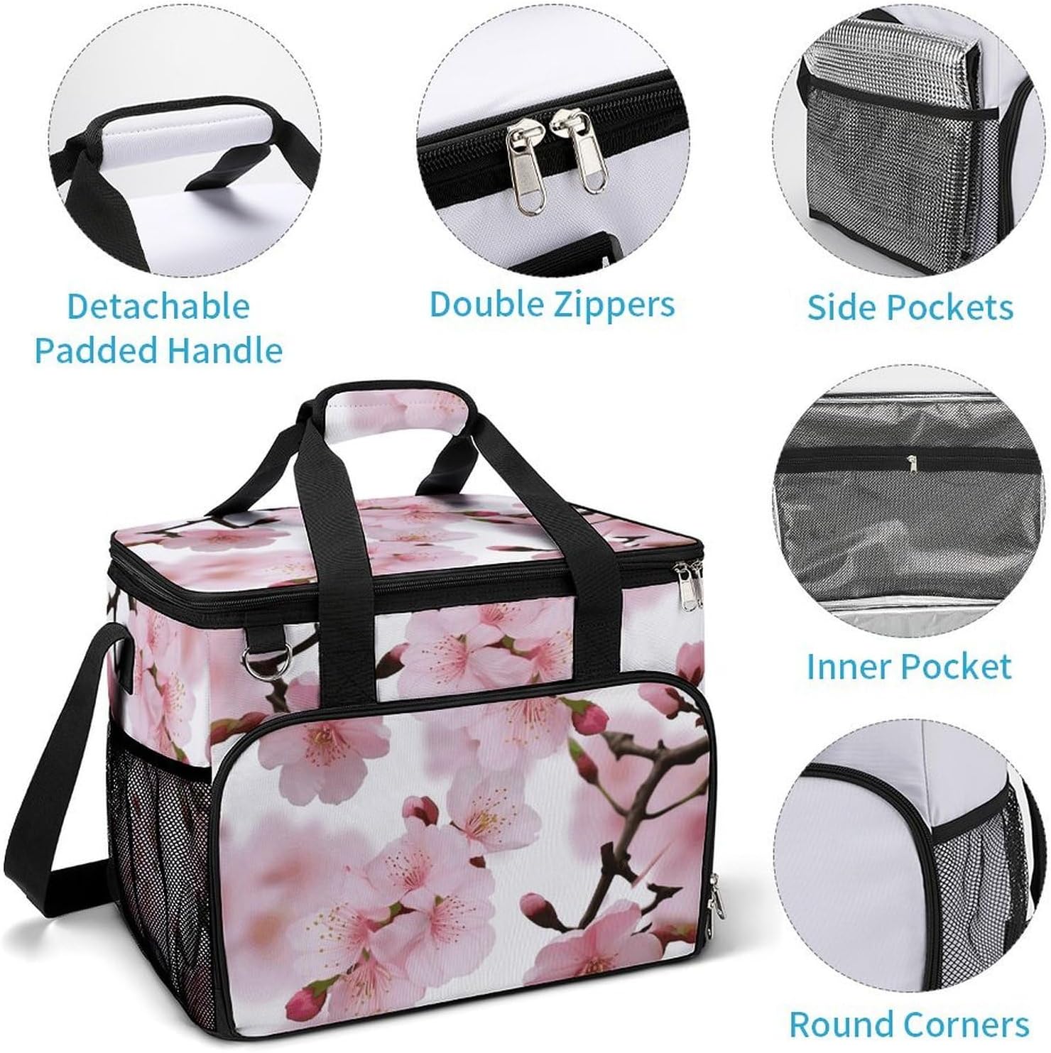 Take Your Meals Anywhere with Cherry Japanese Cherry Blossom Grocery BagsFood Container Carrier Oxford Fabric Picnic Bag Heat Retaining Food Bag Camping Cooler BBQ Accessories Cute Picnic Bag with Pockets Insulated Food Bag for Work Insulated Lunch Tote Bag Camping BagTemperature Control That WorksThe upgraded aluminum foil lining creates an effective thermal barrier. Your drinks stay refreshingly cold, and your hot dishes maintain their warmth for hours. No more lukewarm meals during outdoor outings.Thoughtful Storage DesignTwo side mesh pockets - Perfect for water bottles or umbrellasFront zippered pocket - Keeps keys, phone, or condiments organizedInternal mesh pocket - Stores utensils, napkins, and small essentialsMain compartment - Spacious enough for food containers and snacksBuilt for Daily AdventuresConstructed from high-density oxford fabric with reinforced stitching at stress points. The double zippers are sturdy and smooth-operating. Reinforced handles let you carry heavy loads with confidence.Carry Your WayHandles for quick grabbingStands upright for easy packing and accessPerfect For:Picnics in the parkBeach days and pool partiesCamping and hiking tripsOutdoor concerts and festivalsDaily work lunchesGym and fitness classesRoad trips and travelGrocery shoppingSpecifications:Dimensions: 15.4 x 11.8 x 11.8 inchesMaterial: High-density Oxford fabricLining: Aluminum foil (insulated)Closure: Sturdy double zippersPockets: 2 side mesh, 1 front zipper, 1 internal meshCare: Hand wash or machine wash, do not bleachNote: Food containers and utensils shown in images are not included.