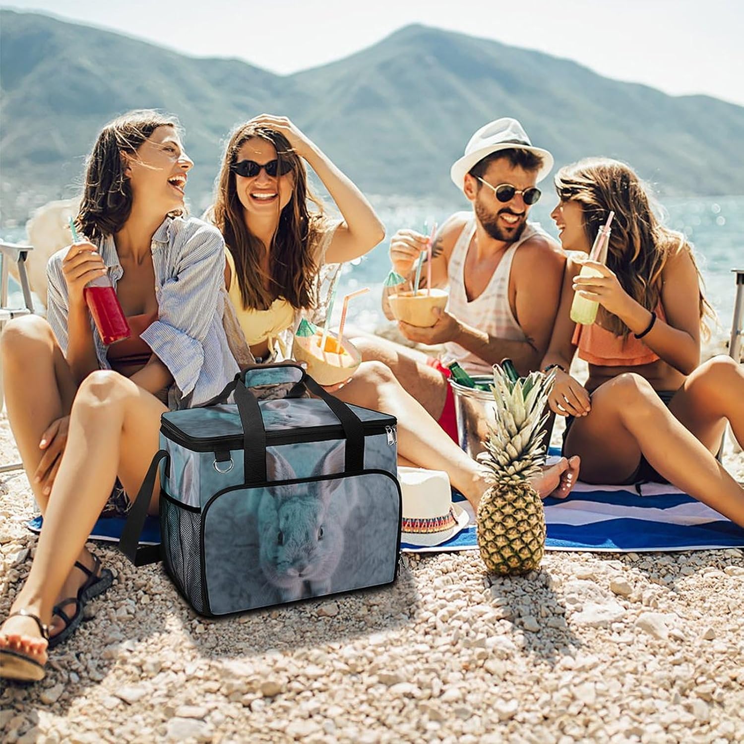 Take Your Meals Anywhere with Light Blue Rabbit Grocery BagsFood Container Carrier Oxford Fabric Picnic Bag Heat Retaining Food Bag Camping Cooler BBQ Accessories Cute Picnic Bag with Pockets Insulated Food Bag for Work Insulated Lunch Tote Bag Camping BagTemperature Control That WorksThe upgraded aluminum foil lining creates an effective thermal barrier. Your drinks stay refreshingly cold, and your hot dishes maintain their warmth for hours. No more lukewarm meals during outdoor outings.Thoughtful Storage DesignTwo side mesh pockets - Perfect for water bottles or umbrellasFront zippered pocket - Keeps keys, phone, or condiments organizedInternal mesh pocket - Stores utensils, napkins, and small essentialsMain compartment - Spacious enough for food containers and snacksBuilt for Daily AdventuresConstructed from high-density oxford fabric with reinforced stitching at stress points. The double zippers are sturdy and smooth-operating. Reinforced handles let you carry heavy loads with confidence.Carry Your WayHandles for quick grabbingStands upright for easy packing and accessPerfect For:Picnics in the parkBeach days and pool partiesCamping and hiking tripsOutdoor concerts and festivalsDaily work lunchesGym and fitness classesRoad trips and travelGrocery shoppingSpecifications:Dimensions: 15.4 x 11.8 x 11.8 inchesMaterial: High-density Oxford fabricLining: Aluminum foil (insulated)Closure: Sturdy double zippersPockets: 2 side mesh, 1 front zipper, 1 internal meshCare: Hand wash or machine wash, do not bleachNote: Food containers and utensils shown in images are not included.