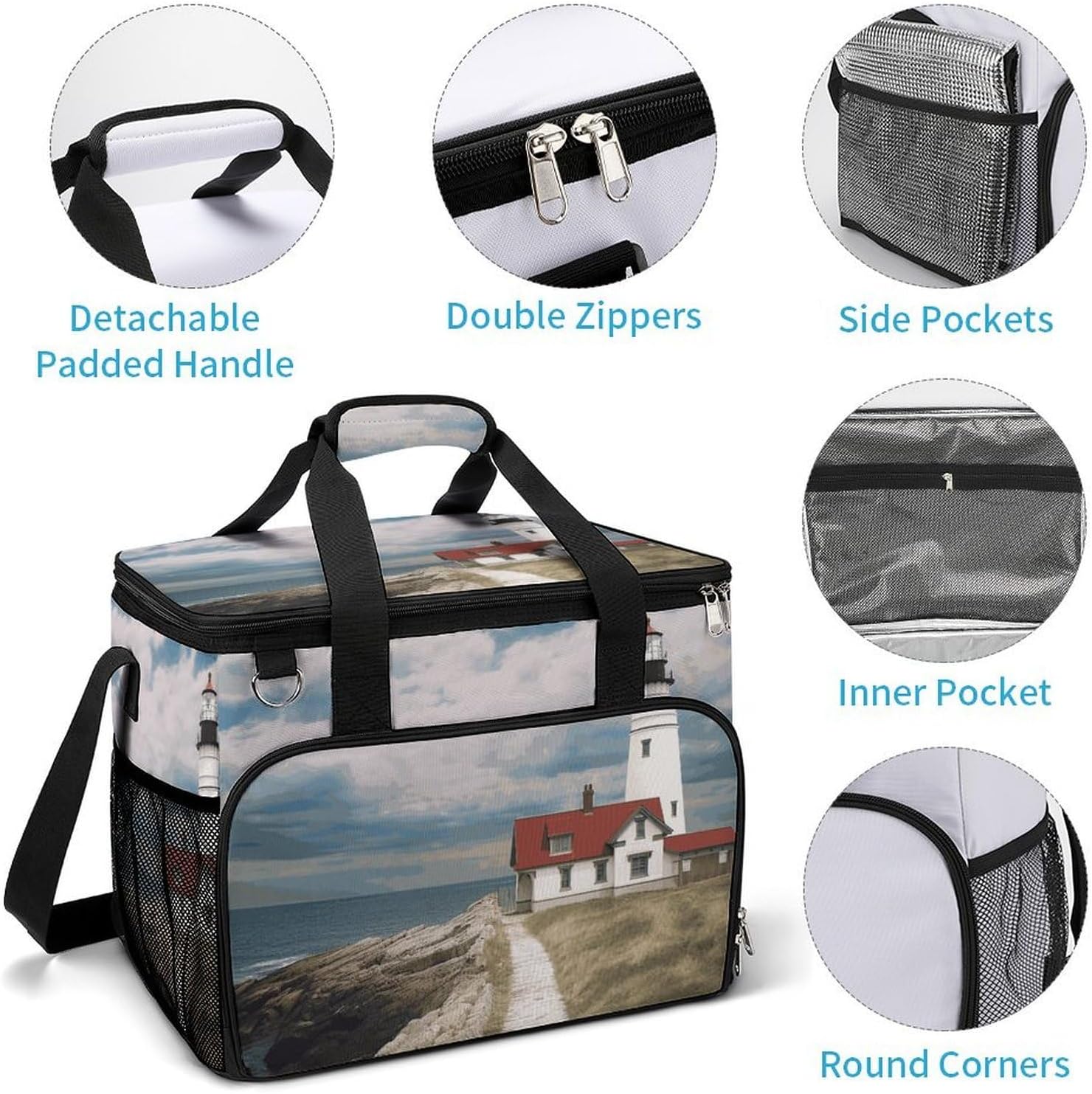 Take Your Meals Anywhere with Lighthouse Backdrop Grocery BagsFood Container Carrier Oxford Fabric Picnic Bag Heat Retaining Food Bag Camping Cooler BBQ Accessories Cute Picnic Bag with Pockets Insulated Food Bag for Work Insulated Lunch Tote Bag Camping BagTemperature Control That WorksThe upgraded aluminum foil lining creates an effective thermal barrier. Your drinks stay refreshingly cold, and your hot dishes maintain their warmth for hours. No more lukewarm meals during outdoor outings.Thoughtful Storage DesignTwo side mesh pockets - Perfect for water bottles or umbrellasFront zippered pocket - Keeps keys, phone, or condiments organizedInternal mesh pocket - Stores utensils, napkins, and small essentialsMain compartment - Spacious enough for food containers and snacksBuilt for Daily AdventuresConstructed from high-density oxford fabric with reinforced stitching at stress points. The double zippers are sturdy and smooth-operating. Reinforced handles let you carry heavy loads with confidence.Carry Your WayHandles for quick grabbingStands upright for easy packing and accessPerfect For:Picnics in the parkBeach days and pool partiesCamping and hiking tripsOutdoor concerts and festivalsDaily work lunchesGym and fitness classesRoad trips and travelGrocery shoppingSpecifications:Dimensions: 15.4 x 11.8 x 11.8 inchesMaterial: High-density Oxford fabricLining: Aluminum foil (insulated)Closure: Sturdy double zippersPockets: 2 side mesh, 1 front zipper, 1 internal meshCare: Hand wash or machine wash, do not bleachNote: Food containers and utensils shown in images are not included.
