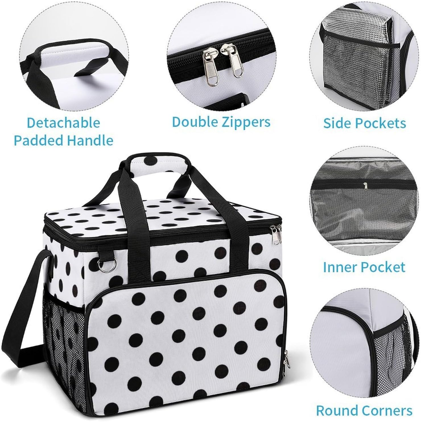 Take Your Meals Anywhere with Polka Dot Grocery BagsFood Container Carrier Oxford Fabric Picnic Bag Heat Retaining Food Bag Camping Cooler BBQ Accessories Cute Picnic Bag with Pockets Insulated Food Bag for Work Insulated Lunch Tote Bag Camping BagTemperature Control That WorksThe upgraded aluminum foil lining creates an effective thermal barrier. Your drinks stay refreshingly cold, and your hot dishes maintain their warmth for hours. No more lukewarm meals during outdoor outings.Thoughtful Storage DesignTwo side mesh pockets - Perfect for water bottles or umbrellasFront zippered pocket - Keeps keys, phone, or condiments organizedInternal mesh pocket - Stores utensils, napkins, and small essentialsMain compartment - Spacious enough for food containers and snacksBuilt for Daily AdventuresConstructed from high-density oxford fabric with reinforced stitching at stress points. The double zippers are sturdy and smooth-operating. Reinforced handles let you carry heavy loads with confidence.Carry Your WayHandles for quick grabbingStands upright for easy packing and accessPerfect For:Picnics in the parkBeach days and pool partiesCamping and hiking tripsOutdoor concerts and festivalsDaily work lunchesGym and fitness classesRoad trips and travelGrocery shoppingSpecifications:Dimensions: 15.4 x 11.8 x 11.8 inchesMaterial: High-density Oxford fabricLining: Aluminum foil (insulated)Closure: Sturdy double zippersPockets: 2 side mesh, 1 front zipper, 1 internal meshCare: Hand wash or machine wash, do not bleachNote: Food containers and utensils shown in images are not included.