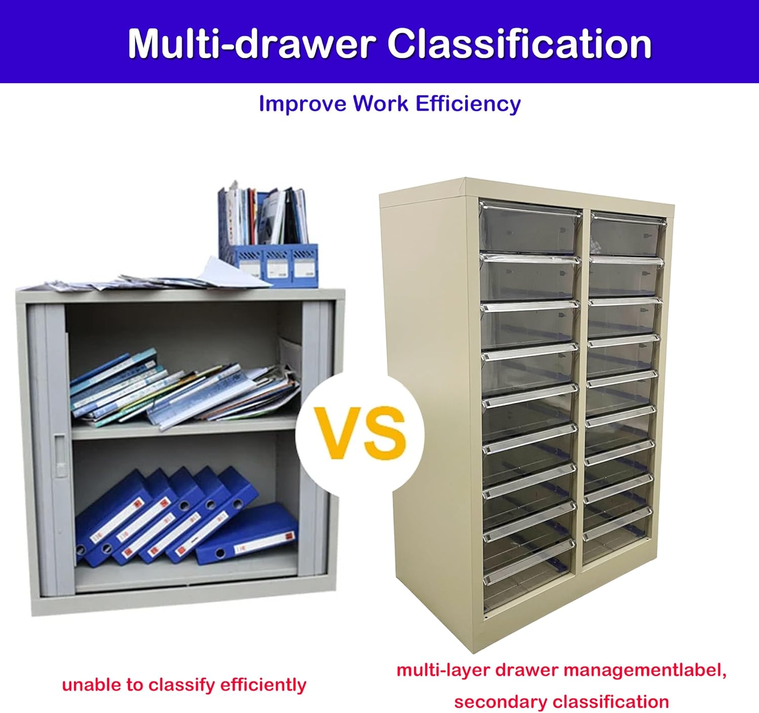 | Additional Features | Curved flat neck handle: beautiful atmosphere, easier handle, more convenient to take things., It can be used in enterprise office, school office, bank, reference room, nail salon, etc. Store a4 paper documents, stamps, toys, cosmetics, books, invoices, delivery notes, etc., Non-slip track: made of ABS material, strong load-bearing, high toughness., The cabinet body is made of cold-rolled steel plate, high temperature spray plastic, do not drop paint. |