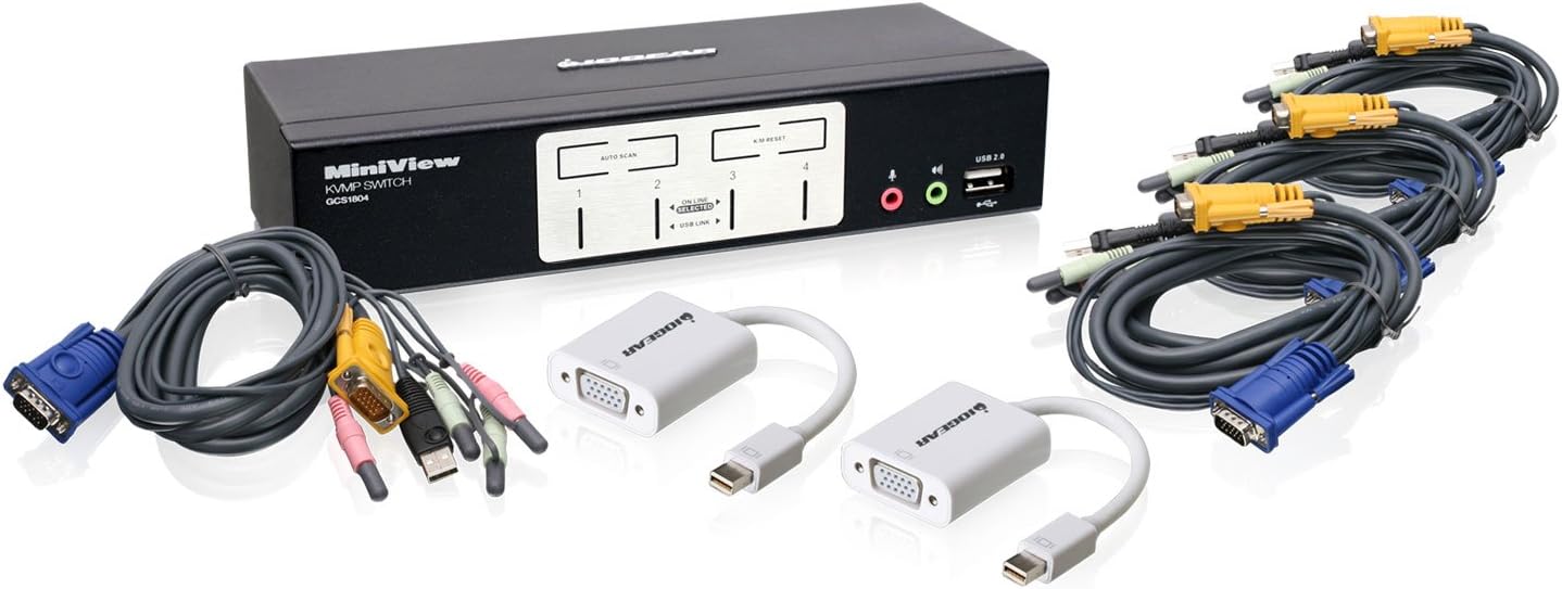 Flexibility to Choose VGA and/or DisplayPort You finally have the flexibility to mix and match your video options with this kit, streamlining and developing efficient workstations by eliminating multiple desktop setups. With the included adapters, IOGEAR's VGA and DisplayPort KVM Solution simplifies the method of sharing two computers using one VGA monitor, keyboard and mouse. This bundle is perfect for a home office or small/medium size business, as it offers the flexibility of choosing between VGA and/or DisplayPort connections. Take advantage of your existing DisplayPort computers, and use the included adapters to view your content on a VGA projector, monitor, or display. Plug-N-Play Switching Switch and control any of the two connected computers easily via remote push button. This 2-Port VGA - DisplayPort switch does not require external power and supports USB hot-plugging, making it easy to add or remove USB computers connected to the KVM. Expand your USB peripheral sharing by using the USB mouse port. This VGA - DisplayPort KVM bundle supports video resolution up to 1920 x 1200 @ 60Hz, giving users excellent, crisp images on the screen every time. Ease-of-Use With no external power needed or software installation required, this is a straight out-of-the-box solution. With built-in cables and included adapters, IOGEAR's 2-Port Cable USB VGA and DisplayPort KVM bundle is a true Plug-N-Play solution to your connectivity needs! This Cable VGA KVM switch also offers a cost-effective solution to increase productivity by allowing users to switch between the Internet and Intranet with connected PCs.