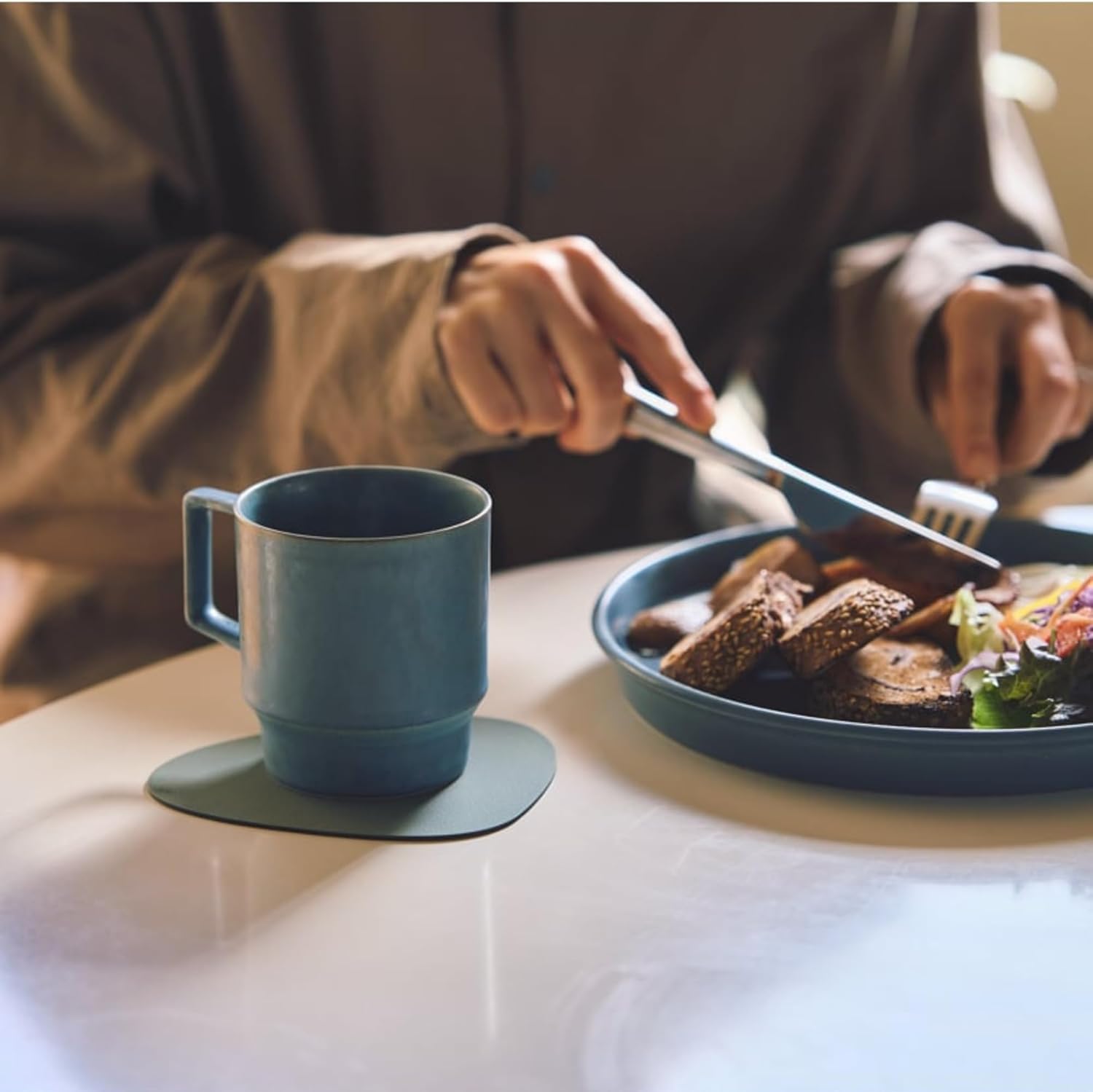 Experience the artistry and practicality of the Japanese Ceramic Mino Ware Mug, a meticulously handcrafted piece that holds 9.5 oz (280cc) capacity. It measures 3.15 x 3.46 x 4.25 inches and weighs 0.496 pounds, designed for both aesthetic appeal and everyday functionality. Each mug is shaped by hand using a traditional water paddle technique, creating unique textures and subtle waves that highlight its artisanal roots. Made of durable porcelain, it offers a dependable choice for hot and cold beverages alike. This mug blends authenticity and thoughtful design, incorporating 20% recycled materials, including unfired clay and unused pottery pieces and over 77% recycled glazes, reflecting the rich pottery heritage of Mino, Japan, the country's largest pottery region. The surface may show small iron spots and surface variations, these are inherent characteristics of the recycled materials, showcasing each mug`s unique character. Its serene blue color complements a variety of settings, from kitchens to dining spaces. The mug is both microwave and dishwasher safe, combining timeless aesthetics with modern practicality.