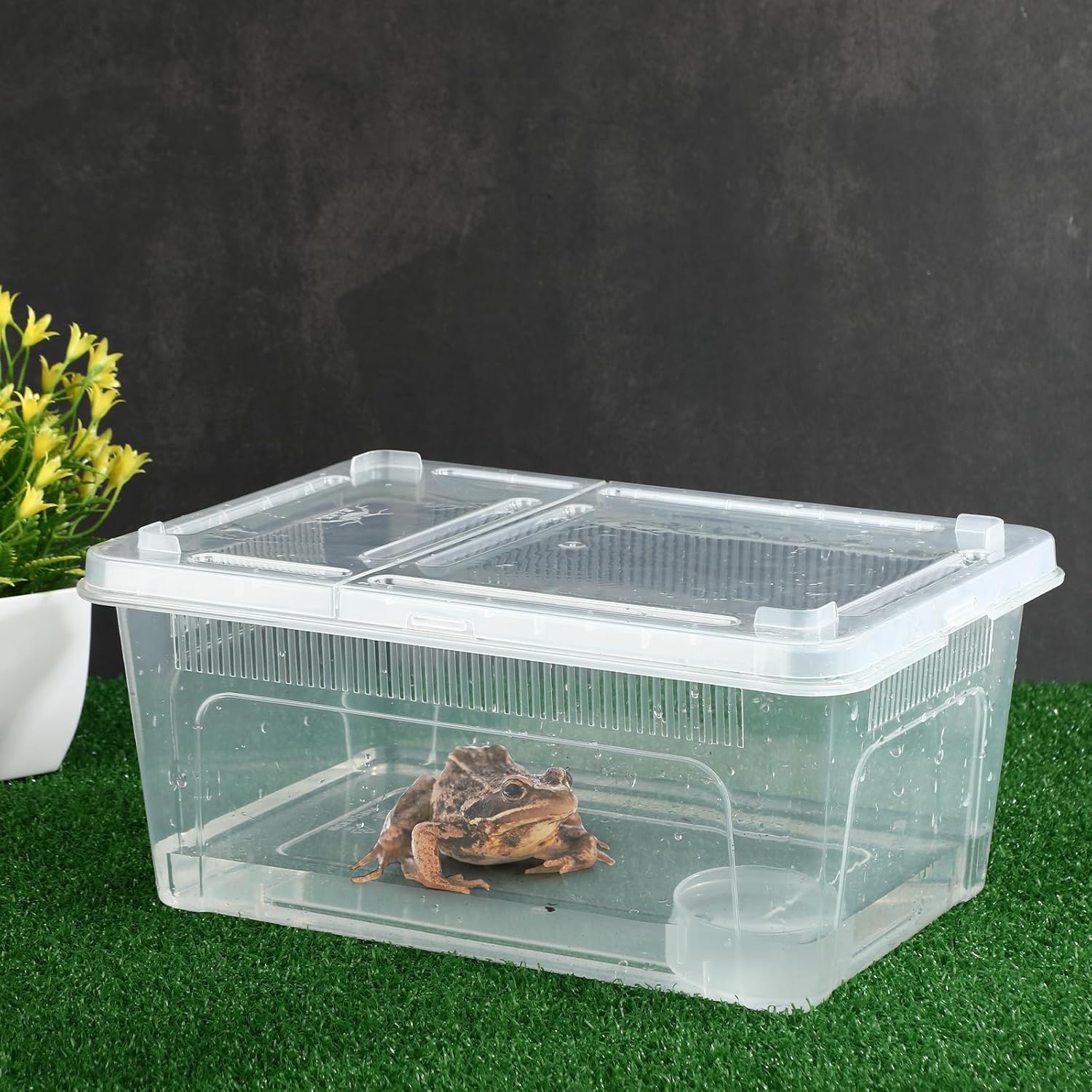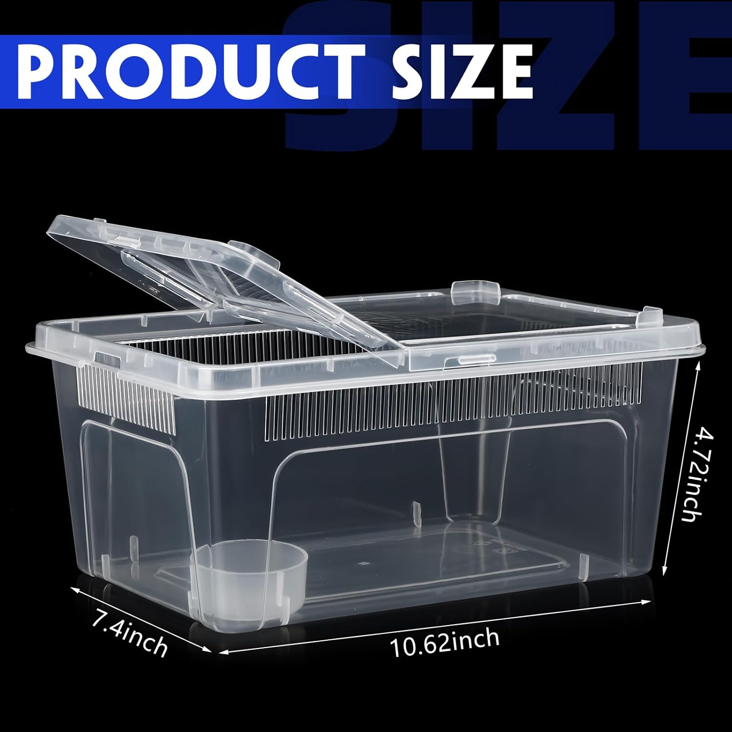 Features: Plastic breeding box for lizard adopts a transparent design, which is convenient for you to observe the status of your pet at any time. Small gecko terrarium is made of plastic, unbreakable and lightweight. Multiple ventilation holes keep air circulating, practical to use. Specifications: Material: plastic Color: clear Size: about 10.6 x 7.4 x 4.7 inches/ 27 x 18.8 x 12 cm Package includes: 8 x Reptile feeding box Notes: Manual measurement, please allow slight errors on size. The color may exist a slight difference due to different screen displays