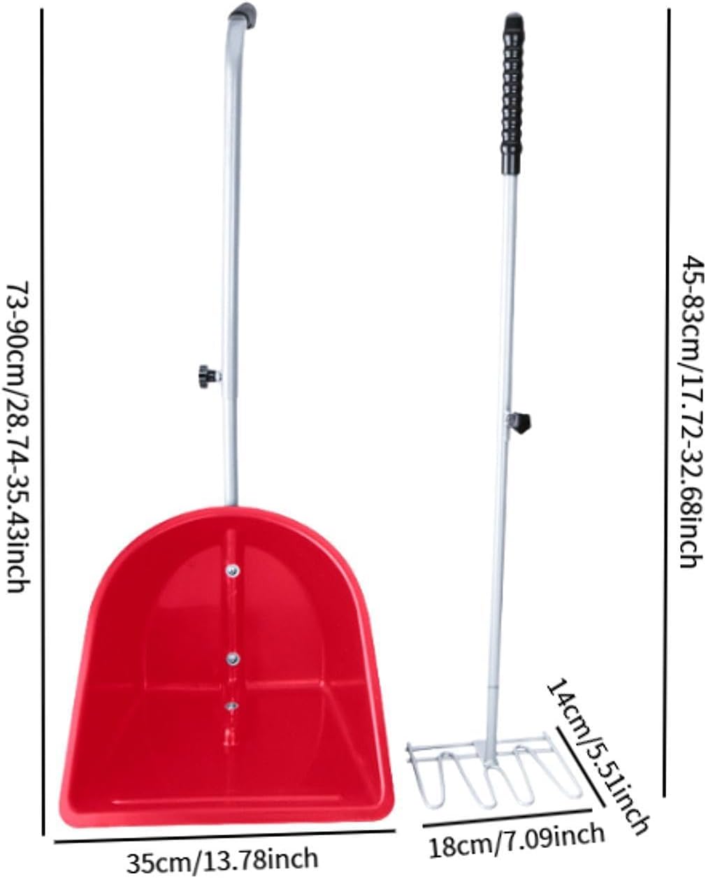 Description:- 【Dung Picker】: Dung Fork provides convenient and efficient cleaning tools for cleaning and cleaning the stable- 【Efficient Cleaning】: Stable Tools adopts an ergonomic design the nonslip handle does not easily fall off is comfortable to hold and improves cleaning efficiency- 【Easy to use】: Garbage Shovels is easy to use and the large capacity dustpan design makes it easy to clean more garbage at 1 time- 【Adjustable】: Iron Fork with Dustpan Combo adopts an adjustable rod design and is equipped with adjustable knobs so that you can adjust according to different needs and enjoy easy cleaning- 【Horse Supplies】: This Dung Fork and Dustpan Set is suitable for handling horse manure and garbage in the stable and its humanized design can meet your cleaning needsSpecification:- Material: pp IronSize Chart:Dustpan: 35 cm x (73 cm-90 cm) / 13.78 inch x (28.74 inch-35.43 inch)Iron fork: 18 cm x14 cm x (45 cm-83 cm) / 7.09 inch x 5.51 inch x (17.72 inch-32.68 inch)Package Includes:1x Iron Fork and Dustpan Set (Random Color)Note:Please allow slightly errors 1-2cm/0.39-0.79inch differences due to manual measurement.