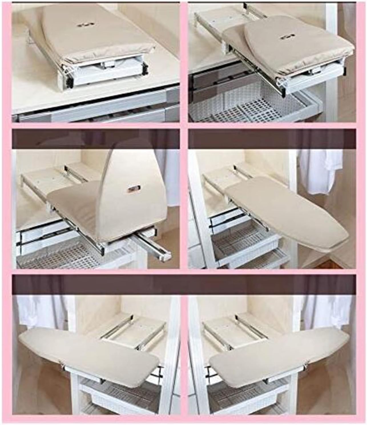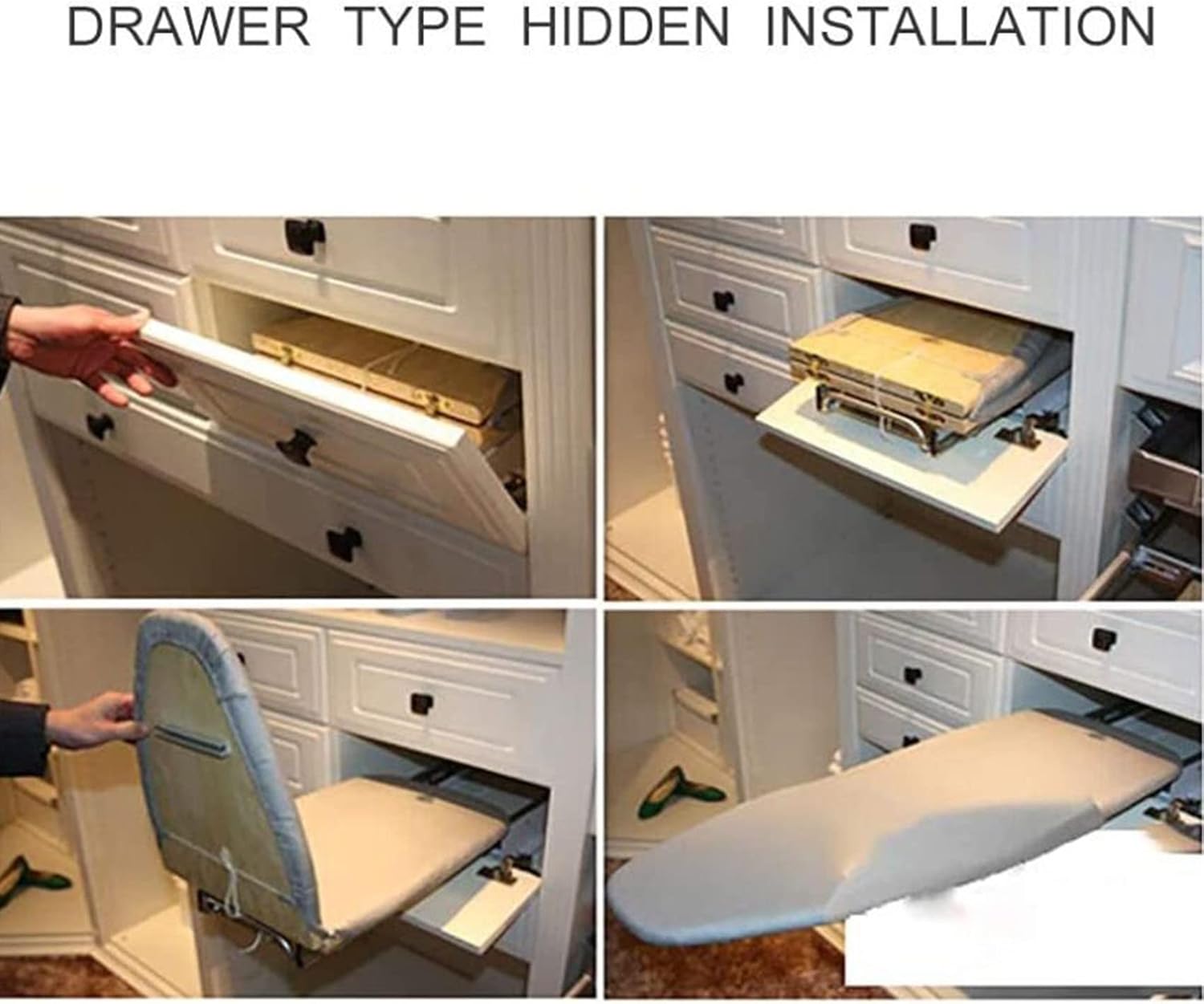 High quality, beautiful and valuable ,an adult can easily unfold and fold the ironing board Describe: The 180-degree rotating mechanism can be locked in the left, right or inclined position. The ironing board can slide and pull back easily. Pull the drawer out of the ironing board The folding ironing board is retractable. Easy to access and unfold from the cabinet drawer. Heat-resistant fabric cover, easy to disassemble and clean. Specification: Material: steel, wood, canvas color: gray Size: 82*31cm / 32.3*12.2in Weight: 8kg / 17.6lb packing list: 1 *Hiding Ironing Board Recommended storage method When the ironing board is not working, it is recommended to fold it for storage. It is best to take care of the ironing board. And can safely avoid being scratched by the protruding part.