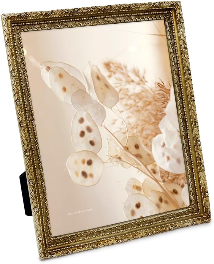 This Isaac Jacobs Vintage-Inspired Frame is a wonderful way to display the photographs that mean the most to you. The love for your friends and family will stand out in this modern, resin frame that has the striking quality of an antique picture frame. Whether you choose to place this frame on a desk, shelf, cabinet, or on a mantelpiece, its charming design is sure to catch the eye of anyone who sees it. This frame stands out from average glass frames due to its intricate design. A vintage-inspired border surrounds the photo, and antique ornates give the entire frame a grand allure. Whether you're looking for a portrait frame that's elegant enough to be a home for your wedding photos or landscape frames that will make your black-and-white prints stand out in style, all your favorite photos will be on stunning display in this frame. This modern frame with the antique touch can be an attractive décor piece on top of a classic side table, or a mid-century modern cabinet in the living room. Display this frame either vertically or horizontally, or hang it on the wall using the built-in hook. The frame has a traditional black, velvet back, with a matching easel. Switching out photos is as easy as flipping the turn buttons on the back and inserting a new photograph. Placing as series of these frames on a wall can transform a blank wall into a home art gallery. This charming frame is an ideal gift for a baby-naming ceremony, graduation, or a birthday party. Your friends, family and loved ones will appreciate the gift of this stunning frame. Whether you're using the frame as a remembrance of loved ones, or to show off your growing family, the classic look of the frame is a wonderful choice to preserve all your cherished memories.
