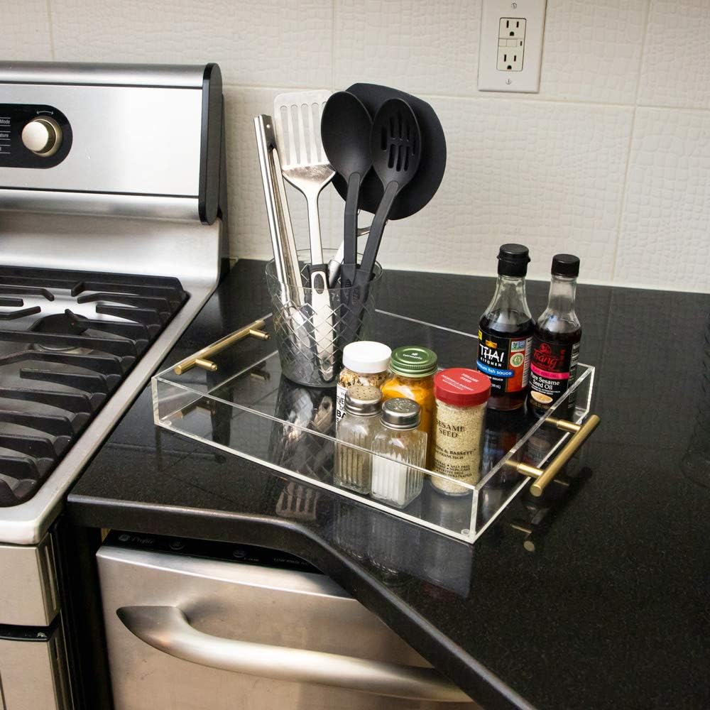 This beautiful acrylic serving tray can be used for many purposes. You can use it in your kitchen, bathroom vanity, bedroom, bar, office as well as on your counter or in your desk. Compliment your home by placing this elegant yet casual tray by the entry to your door. It can be used as a serving tray for food and beverages such as tea, coffee, appetizers, fruit, and much more