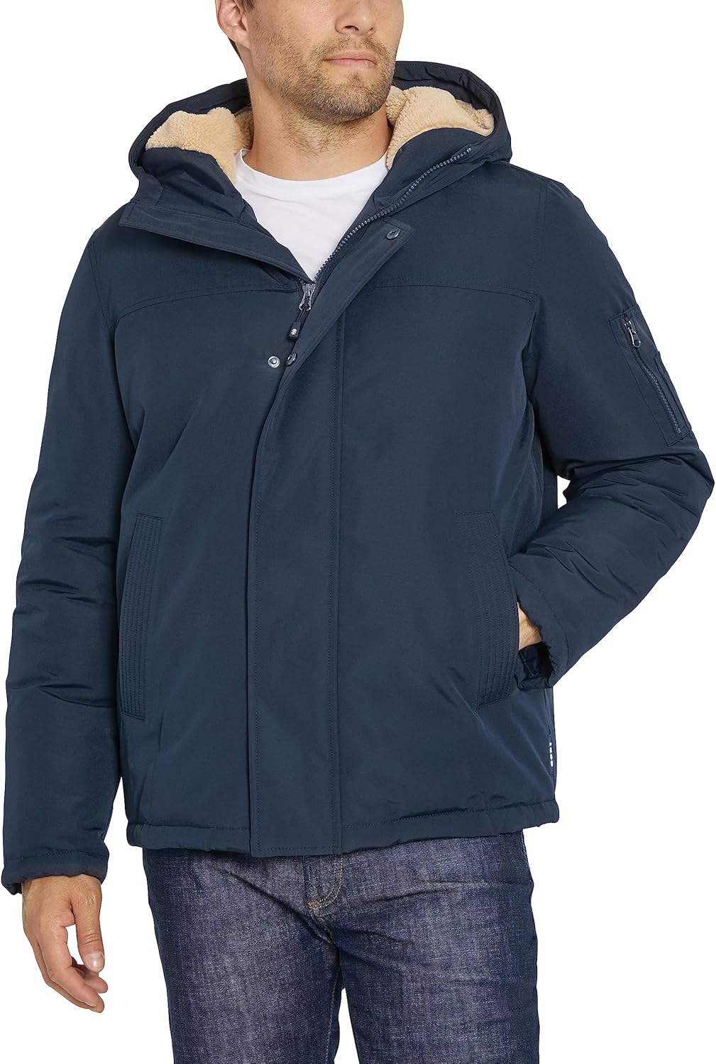 Stay warm and dry in style this season with this sherpa trimmed expedition jacket from IZOD. Featuring an attached sherpa fleece-lined hood, water and wind resistant fabric and plenty of pockets. Easy care. Machine wash cold separately.