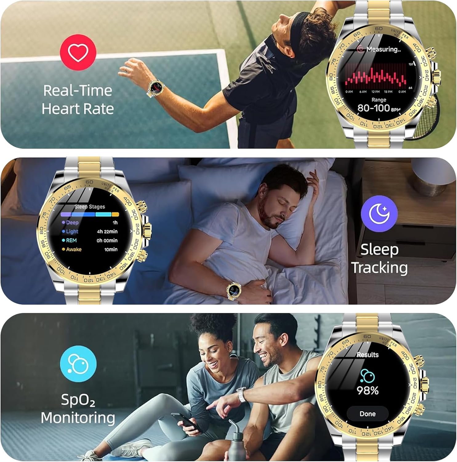 Stay connected, active, and informed with this versatile smartwatch designed for everyday life. Built with a durable zinc alloy frame and water-resistant materials, it’s ready for both work and weekend activities. Whether you're out for a jog, attending a meeting, or relaxing at home, this watch fits right in. It tracks your heart rate, blood oxygen levels, sleep quality, and more—helping you stay on top of your health in a simple and effortless way. With built-in sports modes and automatic workout recognition, you can easily monitor your progress and adjust your routine for better results. Bluetooth calling, voice assistant support, and message notifications make it easy to stay in touch without reaching for your phone. Plus, with a battery that lasts up to 7 days on a single charge, you can go longer between charges and focus more on your day. Simple to use, comfortable to wear, and packed with smart features—this watch is a reliable companion whether you're at the gym, in the office, or out exploring.