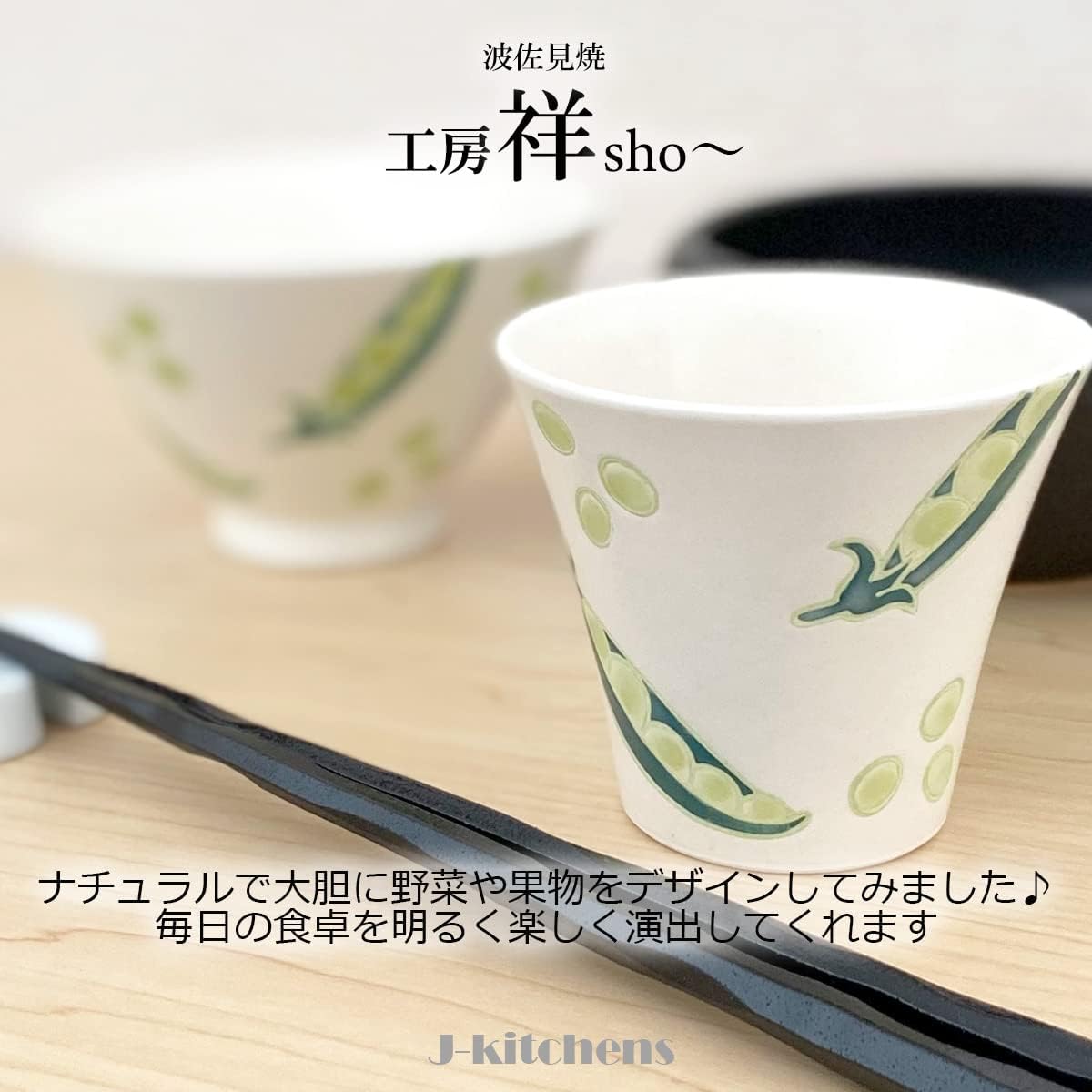 J-kitchens Kobosho Sho~ Fresh Art Anti-Rice Bowl + Shintan Cup Set, Bean, Hasami Ware Made in Japan
