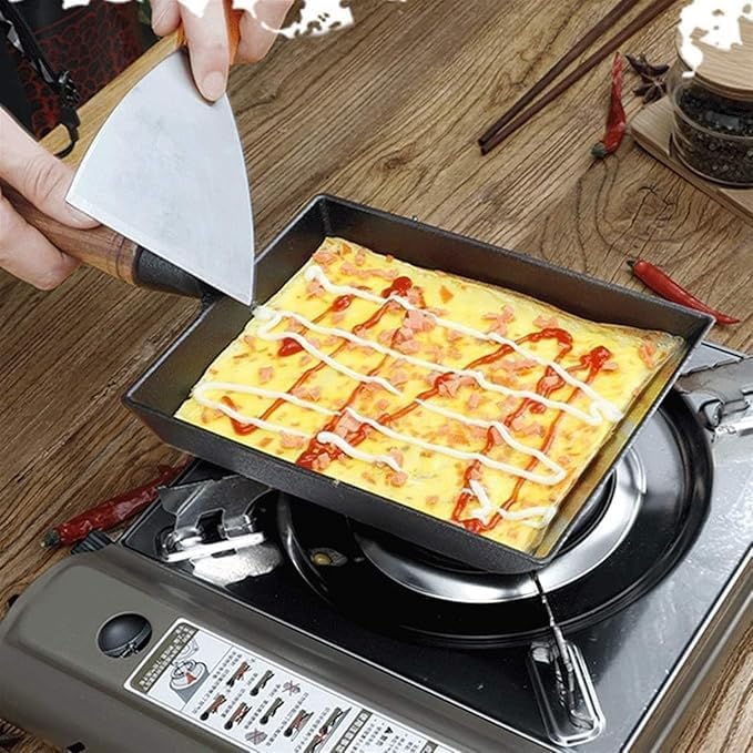 Product Description:Great for breakfast sandwichesPrevents burnt interior and exterior for easy cooking and cleaning. Can be prepared healthy with minimal oil and fat.Suitable for a variety of stoves: electric stove, ceramic stove, induction stove, gas stove.NOTE: Put cold oil under the pan, starting the oil from the bottom of the pan first to prevent the pan from burning. Because of the anti-burn coating, it is not suitable for soup cooking or boiling water. Do not exceed 180°C.Maintenance: After cooling down, wash it again. Do not use iron brushes or shovels.Product descriptionName: Japanese cast iron omelette panDiameter of the mouth of the pan length: 18cm width 15cmHandle length: 19cmTotal weight 1.3KGPackaging: 1* Japanese cast iron omelette pan