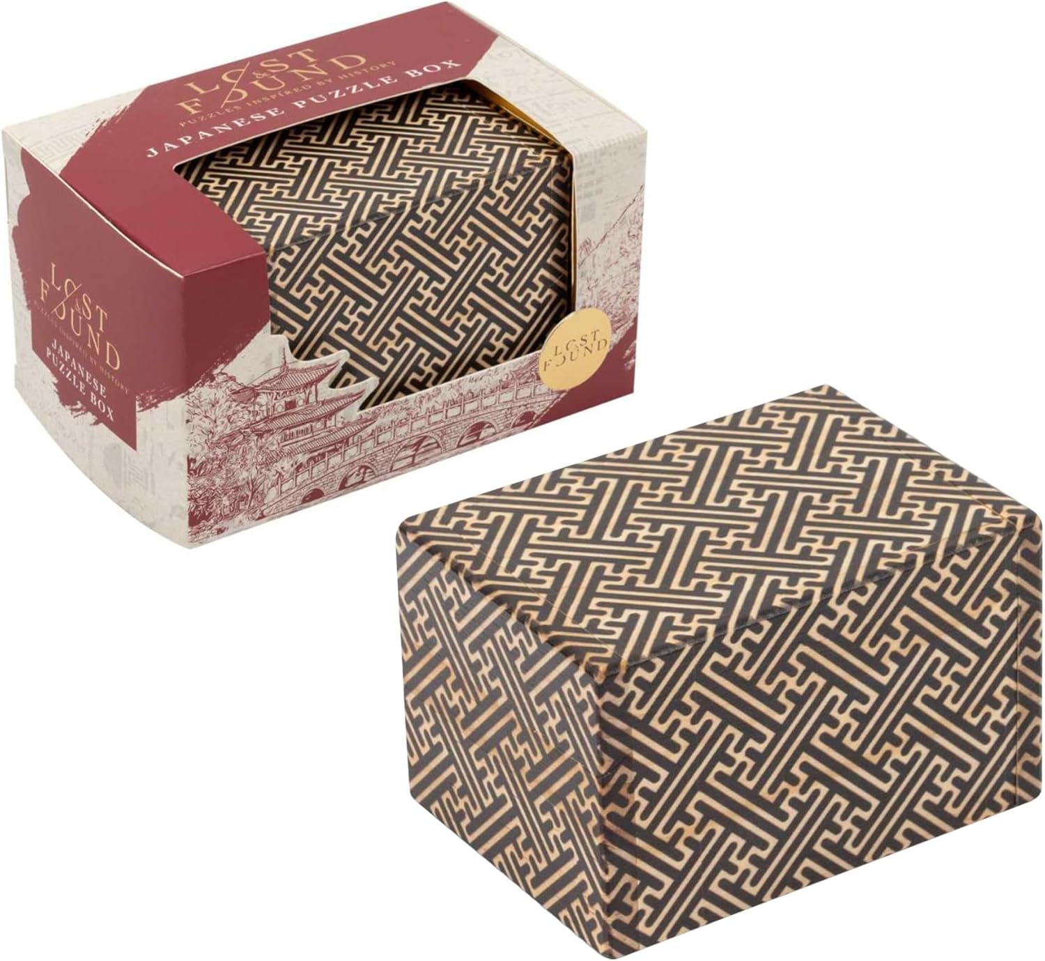 JAPANESE PUZZLE BOX - Can you discover the secret method to open, and then close, this intricate box and find the gift hidden inside? Decorative puzzle boxes first appeared in the 19th century and were sold as tourist souvenirs in the Interlaken region of Switzerland and the Hakone region of Japan. Victorian puzzle boxes were then designed for entertainment and contained secret compartments and hidden openings. Behind its subtle design lies a hidden surprise waiting to be unveiled. Perfect as a tactile display piece and portable brain teaser, this puzzle box blends classic aesthetics with engaging mental exercise. LOST & FOUND COLLECTION: Puzzles inspired by history. A collection of puzzles inspired by ancient civilizations. Delve into the rich history of some of the world’s most symbolic landmarks and prominent designs, as you challenge yourself to find the solutions to these wooden and metal brainteasers. Each puzzle is inspired by a different moment of history and has a unique story to tell.