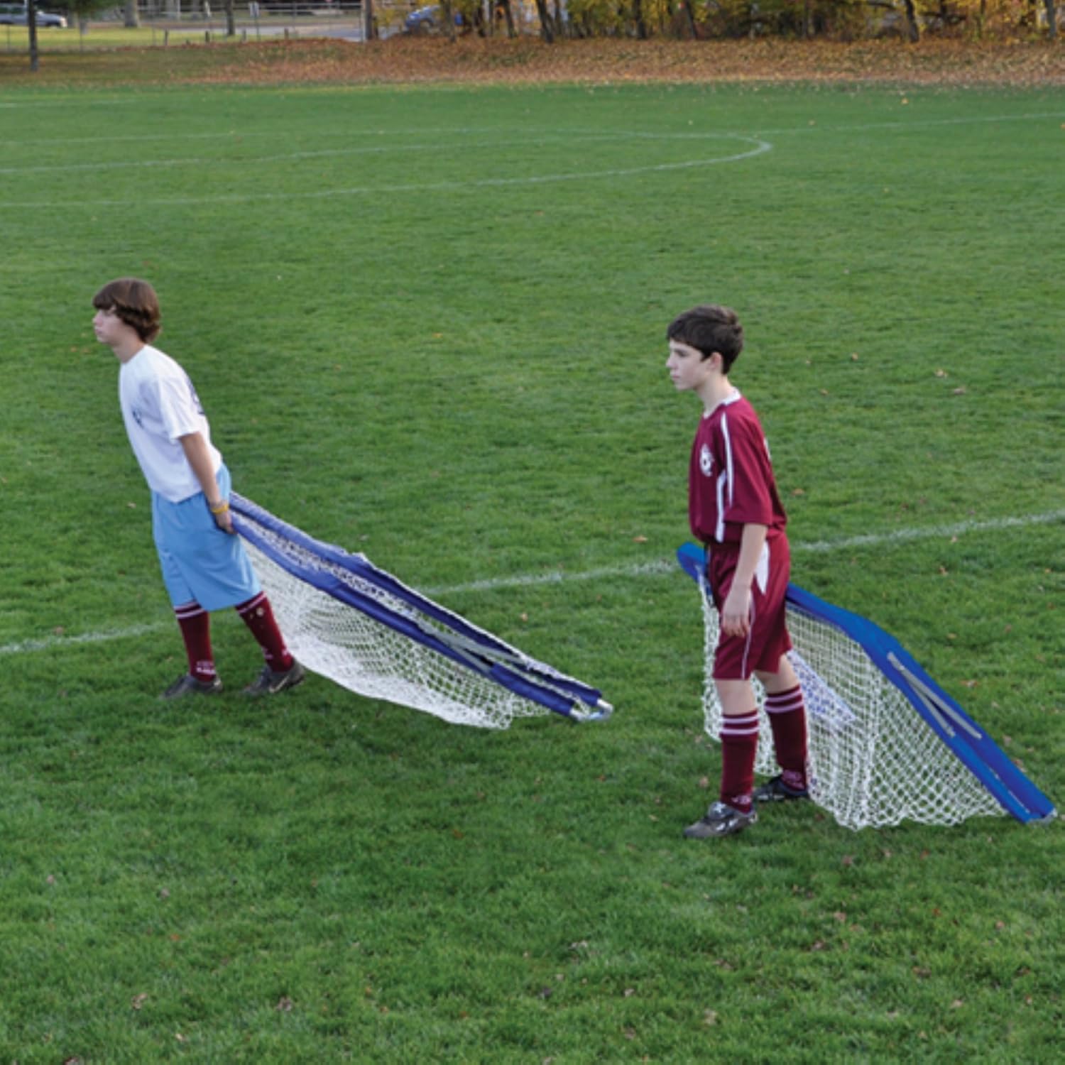 This attractive and versatile target is ideal for short face games and developing shooting skills. 1-5/16" OD Steel frame folds for compact storage and includes front wheels for easy transportation. Includes durable knot-free nylon net with vinyl sleeves that attach with hook and loop. Includes nylon net Durable knot-free with vinyl sleeves that attach with hook and loop, no lanyard required! For outdoor or indoor use Non-marking wheels transport the target quickly and easily!