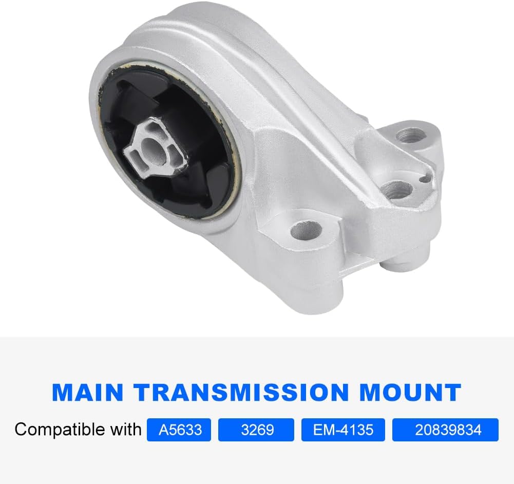 • Replacement for OEM Part Number: Front Motor Mount: compatible with A5659, 3279, EM-4161, 22774206; Front Transmission Mount: compatible with A5562, 3302, EM-4111, 20840181; Left Transmission Mount: compatible with A5618, 3307, EM-4192, 20840183; Main Transmission Mount: compatible with A5633, 3269, EM-4135, 20839834. Please double check the compatibility of parts before purchasing.