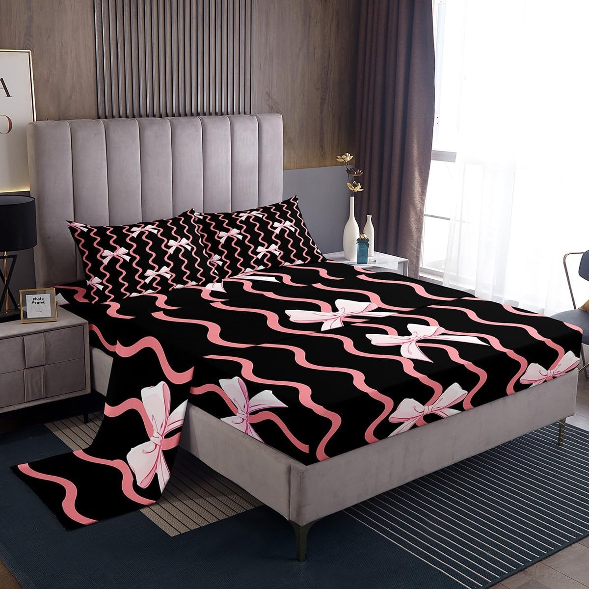 Our bed sheet is made of polyester fabric, lightweight and soft; stylish design is very suitable as room decoration for boys and girls; keep warm in winter and cool in summer; create a comfortable sleeping environment to make you fall asleep all night Range of size 1 twin fitted sheet 39 inch x 75 inch x 16 inch and 1 twin flat sheet 66 inch x 96 inch and 1 standard pillowcase 20 inch x 30 inch 1 full fitted sheet 54 inch x 75 inch x 16 inch and 1 full flat sheet 81 inch x 96 inch and 2 standard pillowcase 20 inch x 30 inch 1 queen fitted sheet 60 inch x 80 inch x 16 inch and 1 queen flat sheet 90 inch x 102 inch and 2 standard pillowcase 20 inch x 30 inch 1 king fitted sheet 78 inch x 80 inch x 16 inch and 1 king flat sheet 90 inch x 106 inch and 2 standard pillowcase 20 inch x 36 inch
