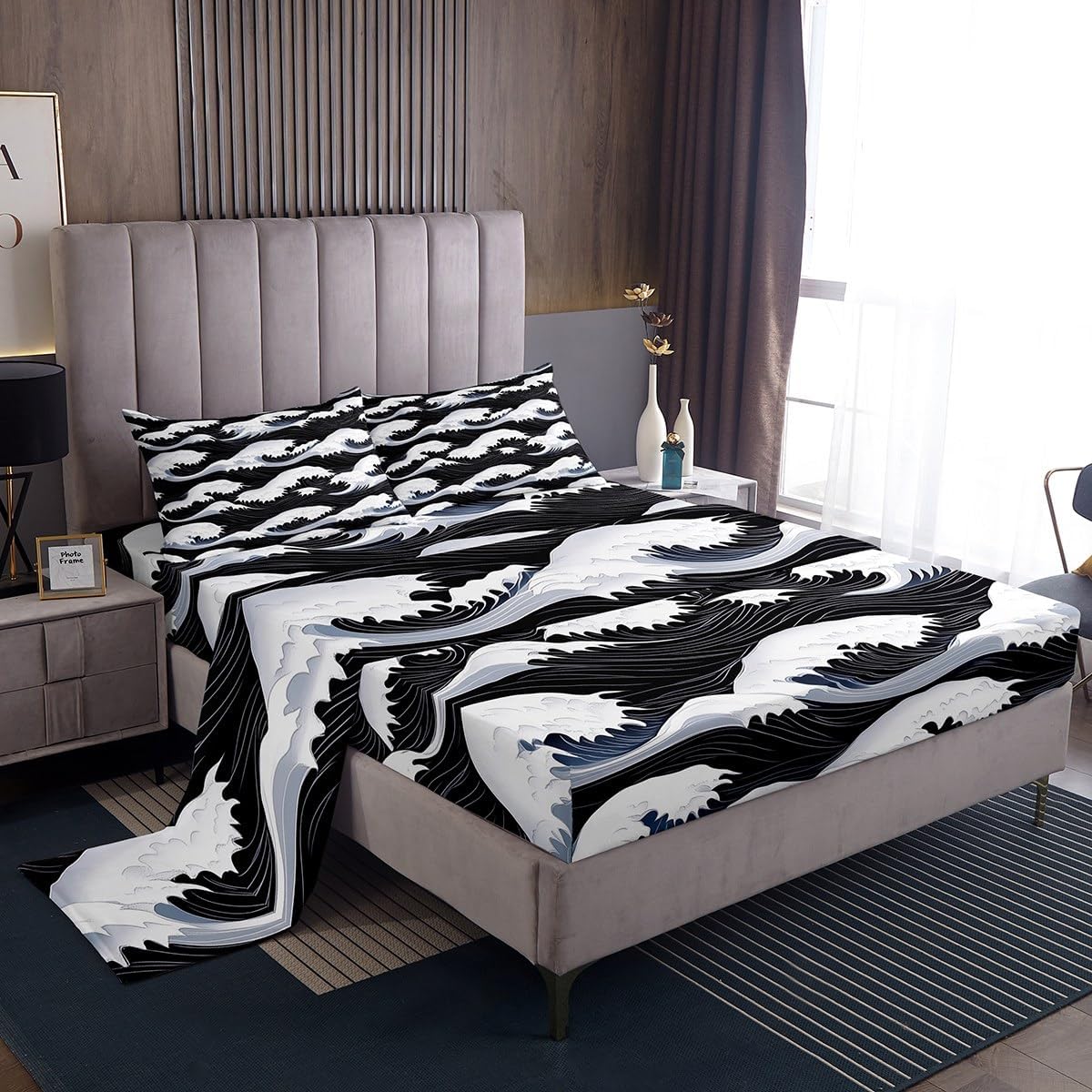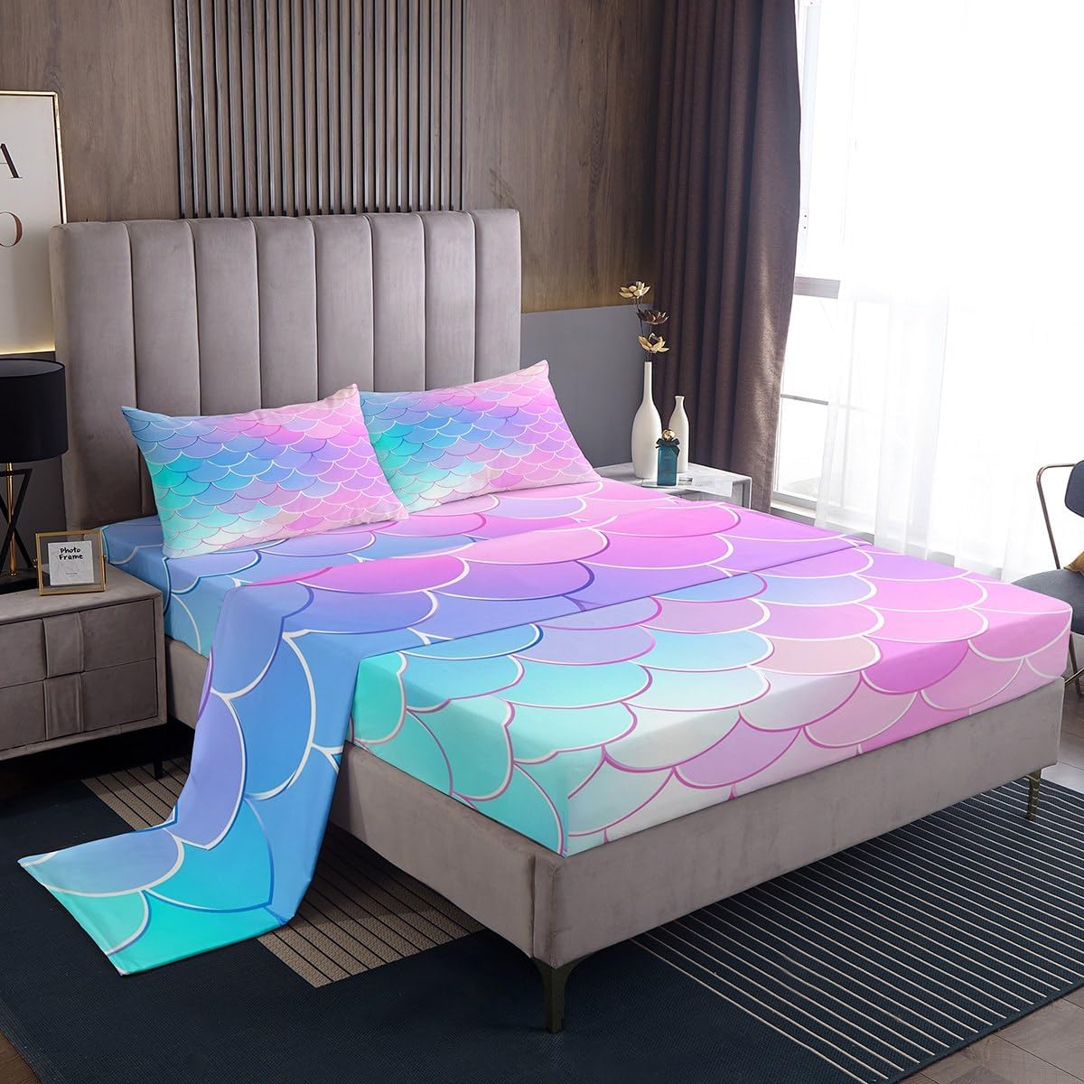 Our bed sheet is made of polyester fabric, lightweight and soft; stylish design is very suitable as room decoration for boys and girls; keep warm in winter and cool in summer; create a comfortable sleeping environment to make you fall asleep all night Range of size 1 twin fitted sheet 39 inch x 75 inch x 16 inch and 1 twin flat sheet 66 inch x 96 inch and 1 standard pillowcase 20 inch x 30 inch 1 full fitted sheet 54 inch x 75 inch x 16 inch and 1 full flat sheet 81 inch x 96 inch and 2 standard pillowcase 20 inch x 30 inch 1 queen fitted sheet 60 inch x 80 inch x 16 inch and 1 queen flat sheet 90 inch x 102 inch and 2 standard pillowcase 20 inch x 30 inch 1 king fitted sheet 78 inch x 80 inch x 16 inch and 1 king flat sheet 90 inch x 106 inch and 2 standard pillowcase 20 inch x 36 inch