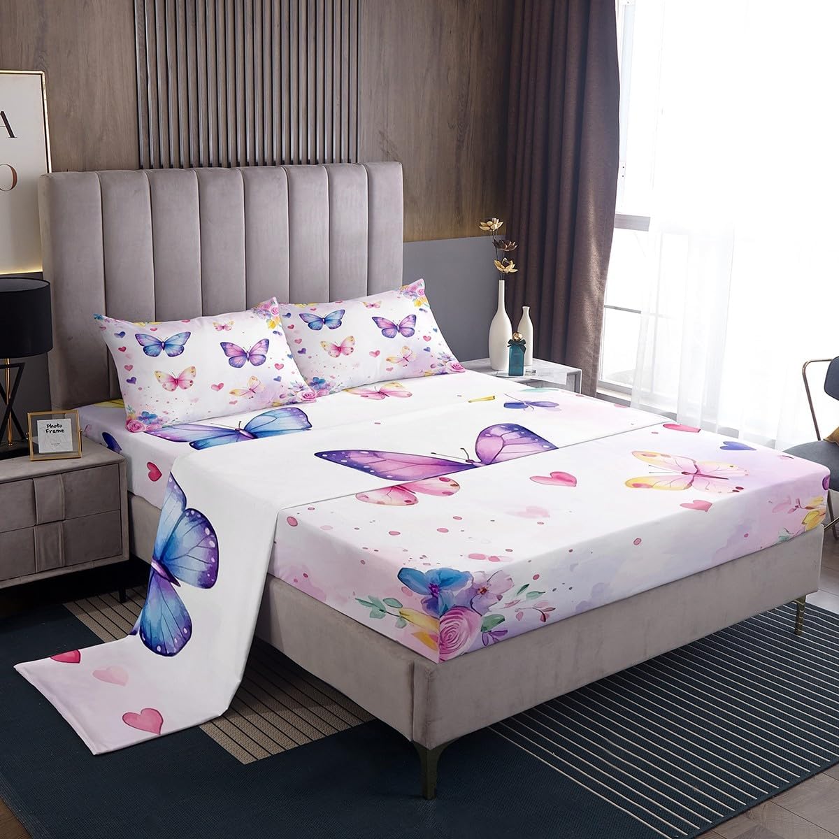 Our bed sheet is made of polyester fabric, lightweight and soft; stylish design is very suitable as room decoration for boys and girls; keep warm in winter and cool in summer; create a comfortable sleeping environment to make you fall asleep all night Range of size 1 twin fitted sheet 39 inch x 75 inch x 16 inch and 1 twin flat sheet 66 inch x 96 inch and 1 standard pillowcase 20 inch x 30 inch 1 full fitted sheet 54 inch x 75 inch x 16 inch and 1 full flat sheet 81 inch x 96 inch and 2 standard pillowcase 20 inch x 30 inch 1 queen fitted sheet 60 inch x 80 inch x 16 inch and 1 queen flat sheet 90 inch x 102 inch and 2 standard pillowcase 20 inch x 30 inch 1 king fitted sheet 78 inch x 80 inch x 16 inch and 1 king flat sheet 90 inch x 106 inch and 2 standard pillowcase 20 inch x 36 inch