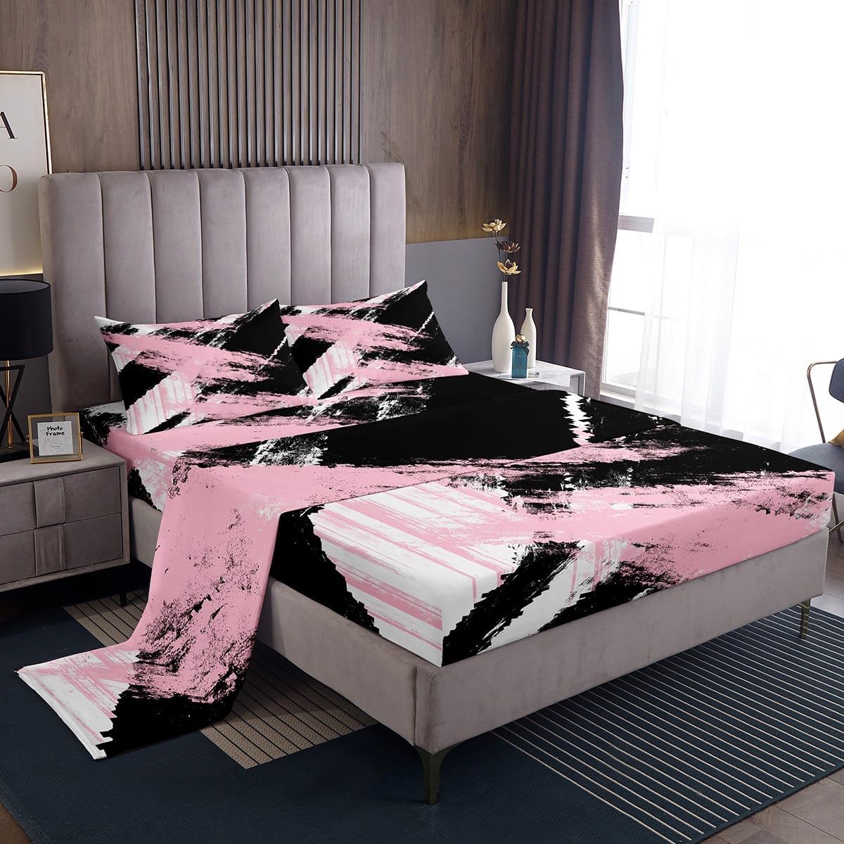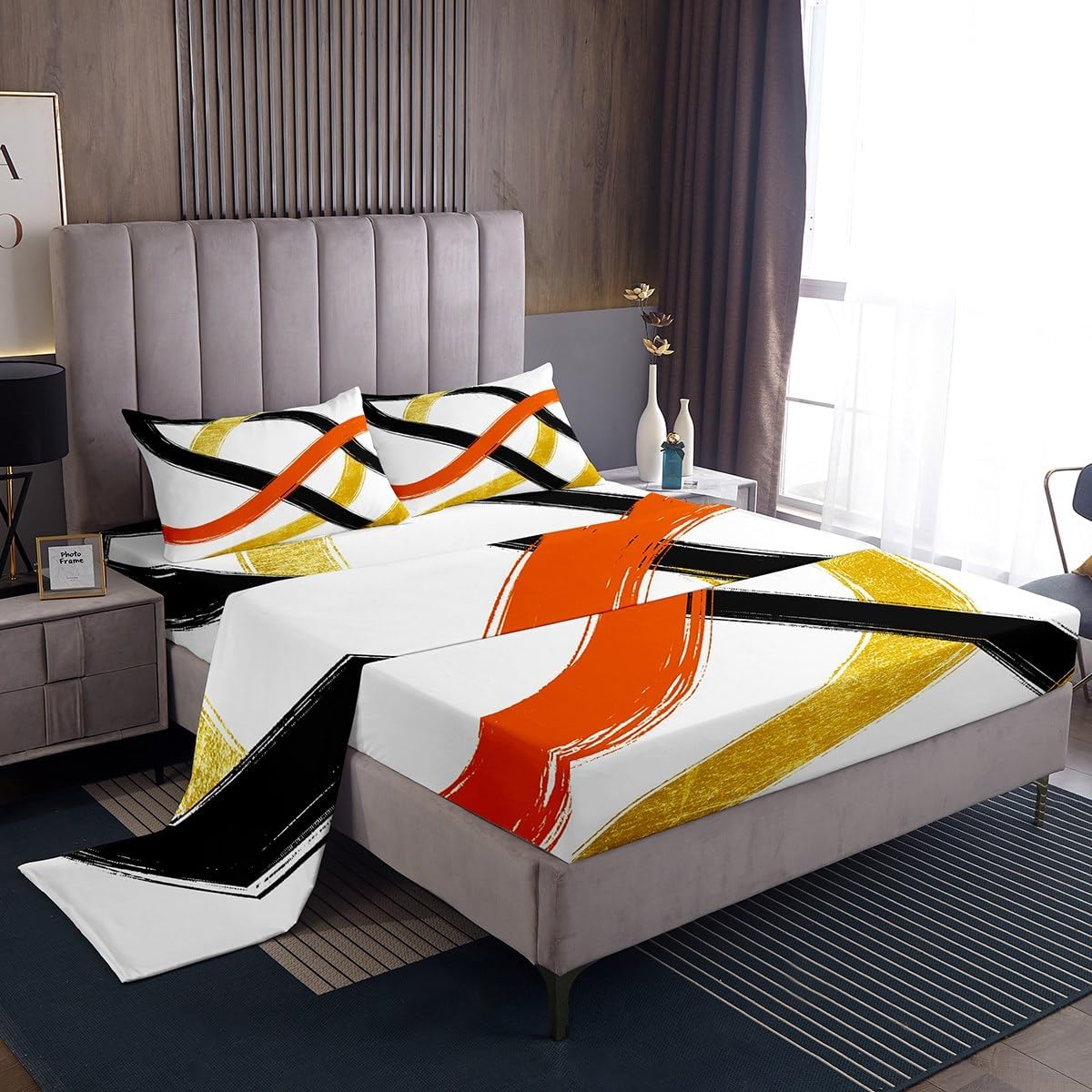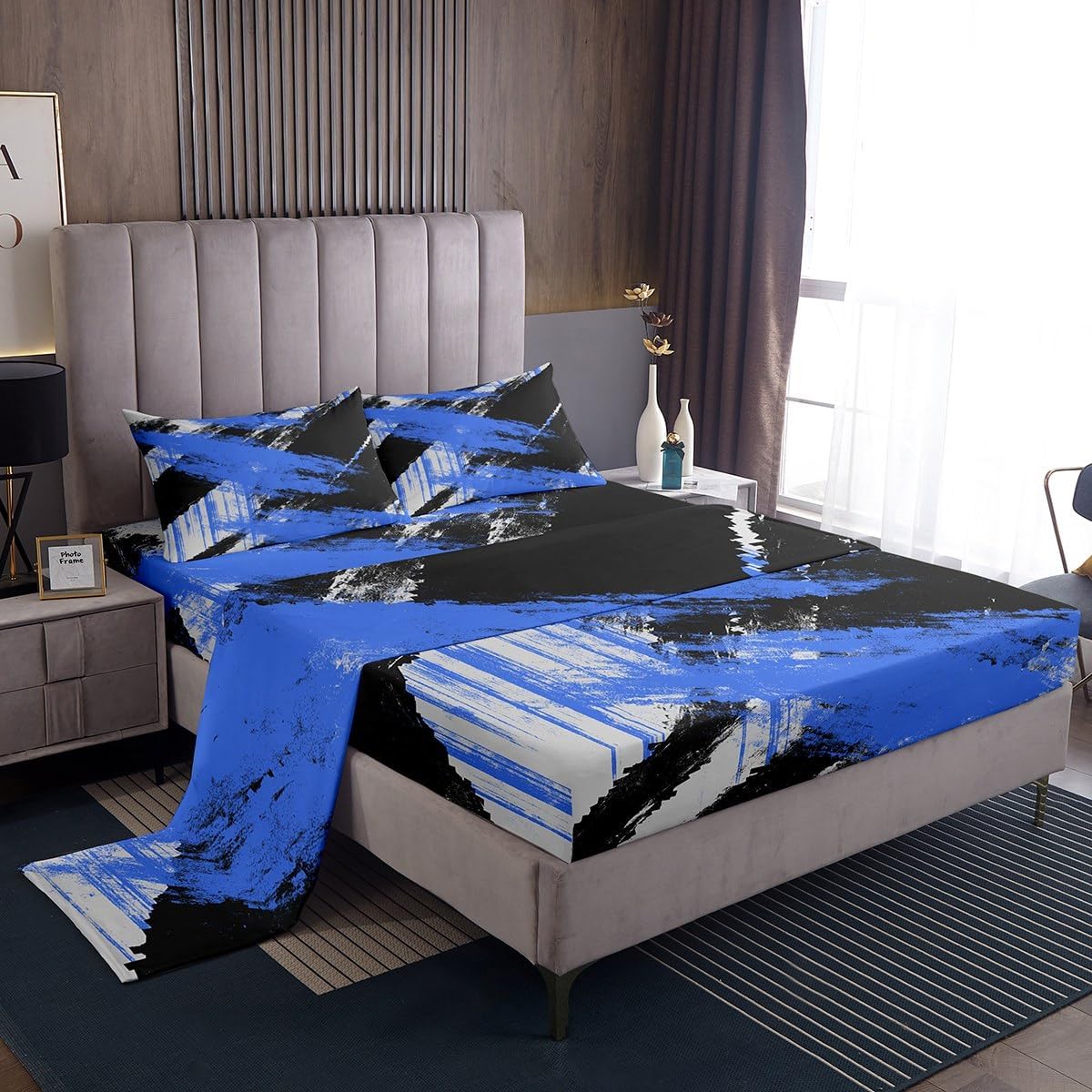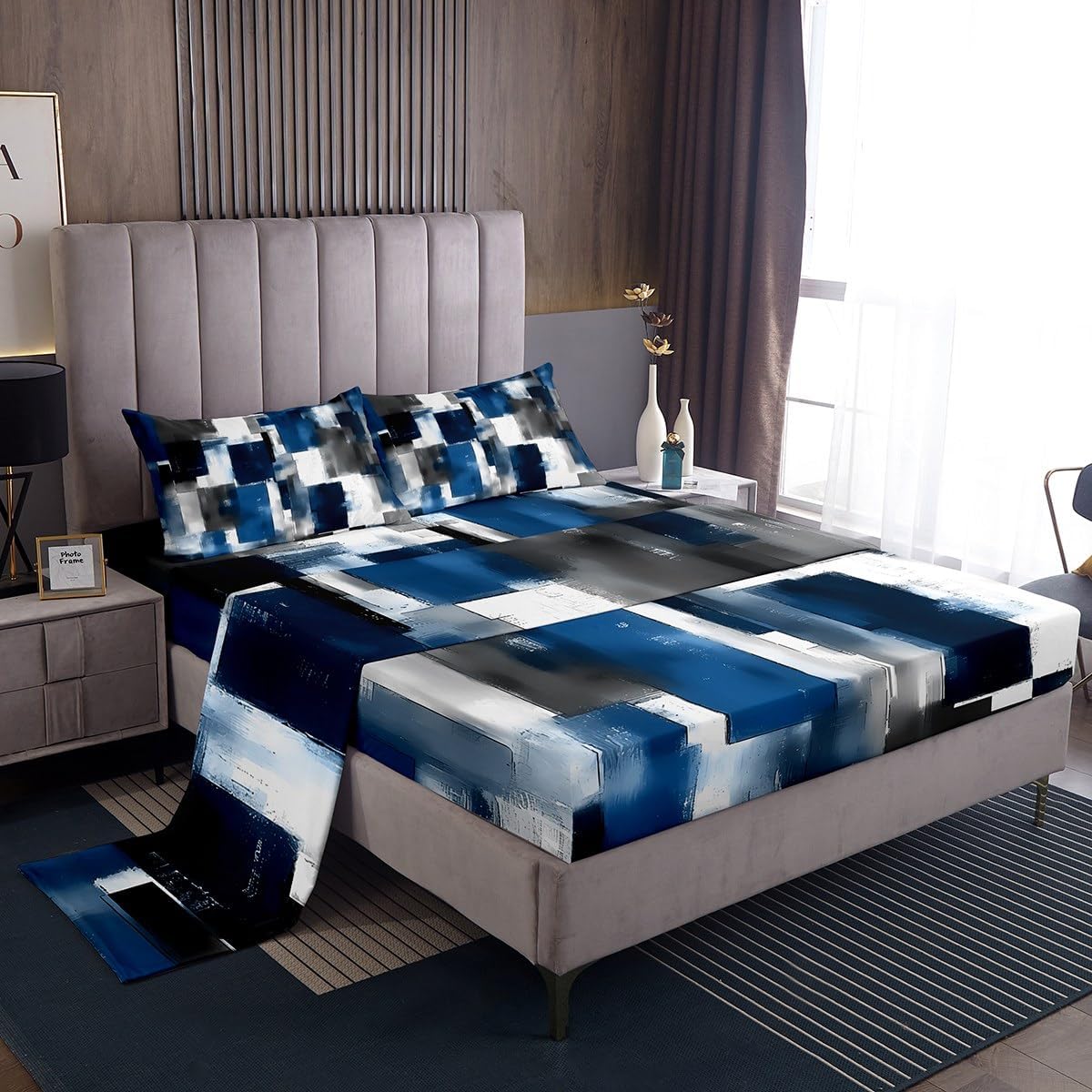 Our bed sheet is made of polyester fabric, lightweight and soft; stylish design is very suitable as room decoration for boys and girls; keep warm in winter and cool in summer; create a comfortable sleeping environment to make you fall asleep all night Range of size 1 twin fitted sheet 39 inch x 75 inch x 16 inch and 1 twin flat sheet 66 inch x 96 inch and 1 standard pillowcase 20 inch x 30 inch 1 full fitted sheet 54 inch x 75 inch x 16 inch and 1 full flat sheet 81 inch x 96 inch and 2 standard pillowcase 20 inch x 30 inch 1 queen fitted sheet 60 inch x 80 inch x 16 inch and 1 queen flat sheet 90 inch x 102 inch and 2 standard pillowcase 20 inch x 30 inch 1 king fitted sheet 78 inch x 80 inch x 16 inch and 1 king flat sheet 90 inch x 106 inch and 2 standard pillowcase 20 inch x 36 inch