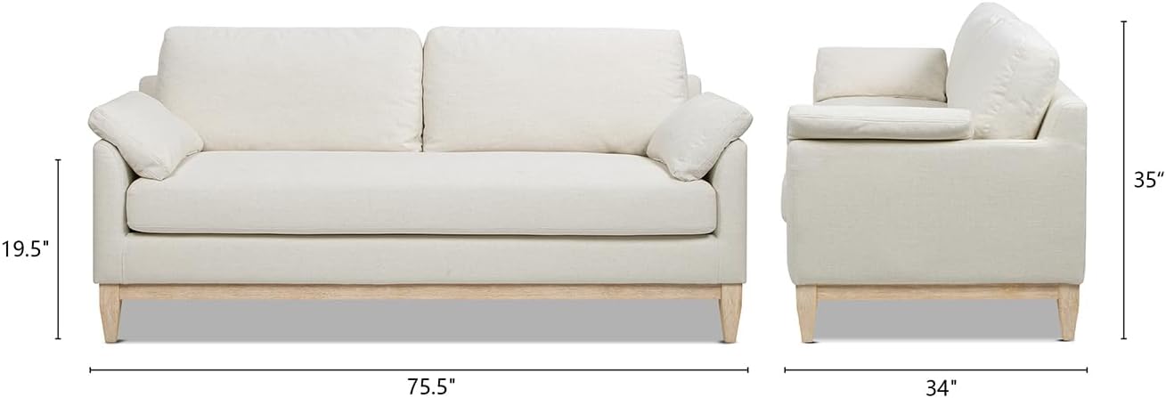 Jennifer Taylor Home Pasadena 75.5" Modern Farmhouse Sofa, Flax White Linen