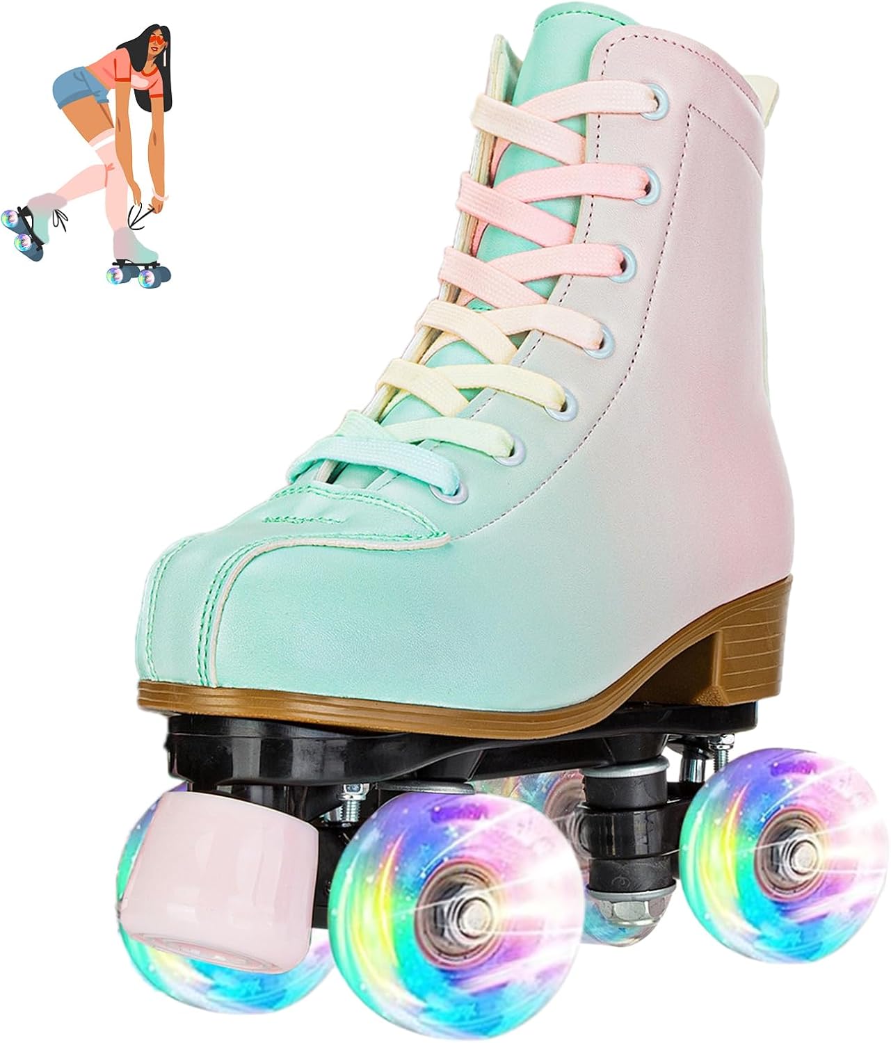 Product Features: -More safe,suitable for beginners -flash and non-flash wheels for your choice -Suitable for all environment Size chart: WOMEN SIZE CHART: Our Size --- Heel To Toe----US Size(Women) 32-----21.5cm/ 8.47inch-----US: 4.5 33-----22cm/ 8.66inch----US: 5 34-----22.5cm/ 8.85inch-----US: 5.5 35-----23cm/ 9.05inch-----US: 6 36-----23.5cm/ 9.25inch-----US: 6.5 37-----24cm/ 9.44inch-----US: 7 38-----25cm/9.84inch-----US:8 39-----25.5cm/10.03inch-----US: 8.5 40-----26cm/10.23inch-----US: 9 41-----27cm/10.62inch-----US: 10 42-----27.5cm/10.82inch-----US: 10.5 43-----28cm/11.02inch-----US:11 44-----29cm/11.41inch-----US:12 45-----29.5cm/11.61inch-----US: 13 MEN SIZE CHART: Our Size --- Heel To Toe----US Size(Men) 32-----21.5cm/ 8.47inch-----US: 3 33-----22cm/ 8.66inch-----US: 3.5 34-----22.5cm/ 8.85inch-----US: 4 35-----23cm/ 9.05inch------US: 4.5 36-----23.5cm/ 9.25inch-----US: 5 37-----24cm/ 9.44inch-----US: 5.5 38-----25cm/9.84inch-----US:6.5 39-----25.5cm/10.03inch-----US: 7 40-----26cm/10.23inch-----US: 7.5 41-----27cm/10.62inch-----US: 8.5 42-----27.5cm/10.82inch-----US: 9 43-----28cm/11.02inch-----US:9.5 44-----29cm/11.41inch-----US:10.5 45-----29.5cm/11.61inch-----US: 11 Package Include: A pair of Roller SkatesTips: 1. Due to some external factors such as lighting effects / environment, display brightness setting, etc., the actual object hue may be slightly inaccurate. 2. As for the size, due to manual measurement, please allow a difference of 1-2 cm, thank you! 3.We suggest that you could buy one size will be smaller than you usually wear. Eg: You usually wear US size 8, and you can choose US size 7 for this roller skates. We give a huge importance to the satisfaction of our clients,please do not hesitate to tell me if you have any other questions.