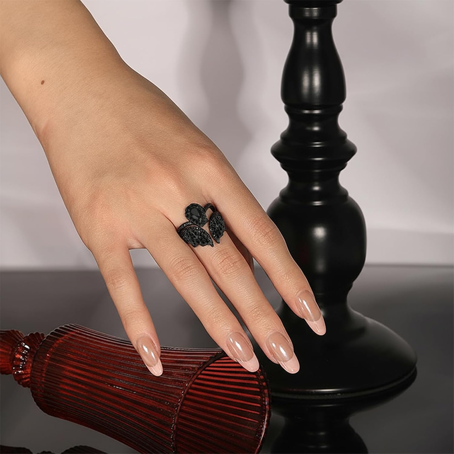 Jeulia Presents: The Bat Coffin Bridal Set - A Unique Symbol of Eternal LoveEmbrace a love that is as unique and profound as your own story with the Jeulia Bat Coffin Wedding Ring Set. This collection is designed for those who find beauty in the unconventional, offering a stunning alternative to traditional bridal jewelry. It‘s not merely an engagement ring or a wedding band; it‘s a wearable promise, a gothic romance encapsulated in sterling silver.Crafted for Lasting CommitmentThis exquisite ring set is meticulously crafted from premium 925 Sterling Silver, ensuring a durable, tarnish resistant, and hypoallergenic piece of jewelry perfect for lifelong wear. The solid construction and non adjustable band are designed for a secure and comfortable fit, symbolizing the strength and permanence of your bond.A Masterpiece of Gothic Bridal JewelryAt the heart of this design lies the uniquely captivating pear cut bat coffin silhouette, a symbol of eternal togetherness. It is elegantly flanked by delicate wings adorned with sparkling diamonds, representing love taking flight. This unique engagement ring set is a bold statement piece, perfect as a promise ring, a non traditional engagement ring, or a matching wedding ring set that truly stands out.The Complete Gift for HerWe understand that every significant moment deserves a perfect presentation. This complete 2PCS wedding ring set for women arrives in a sophisticated jewelry gift box, making it gift ready for any occasion. Whether it‘s for a surprise proposal, a milestone anniversary, a vow renewal, or as a meaningful self indulgence, this set is destined to be cherished.Choose Jeulia for Distinctive Love StoriesJeulia is dedicated to creating jewelry that celebrates individuality and deep emotional connections. This bat coffin bridal set is a testament to love‘s unique journey, making it the ultimate engagement bridal set for the alternative bride. It’s more than a piece of jewelry; it’s the beginning of your forever, wrapped in mystery and elegance.Basic Information:Stone Color:Diamond WhiteNumber of Primary Stone:1/1.1 ctNumber of Side Stone:107/2.82 ctStone Shape:Pear, RoundStone Size:1,1.2,1.5,1.7,2,0.8 mm;5*7 mmPlating Color:SilverHeight:5 mmMaterial:925 SilverThickness:1.2 mmWeight:7 gWidth:3.4 mm