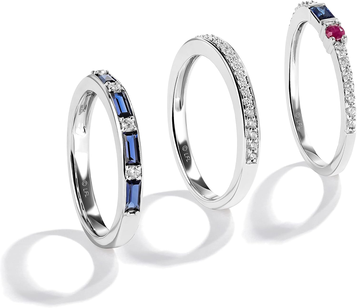 R2 Series multi layer fashion ring . Made in silver, white diamonds, garnet, and genuine blue sapphire.
