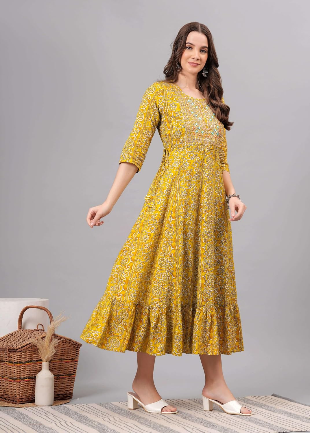 Make an entrance in this figure-flattering Anarkali Kurti. With its lively colors, intricate embroidery, and flowing silhouette, this gorgeous kurta dress brings together classic Indian elegance with modern tailoring. The lightweight, breezy fabric keeps you comfortable in any climate.
