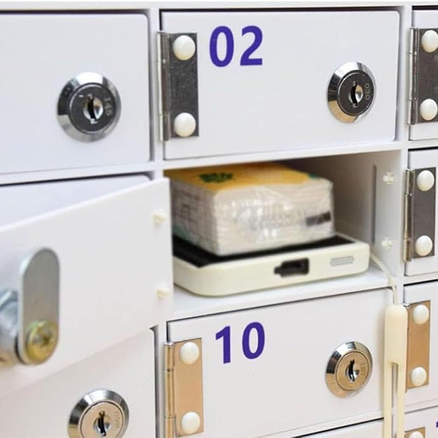 JKGHK mobile phone locker can keep items safe. Also perfect for organizing student phones in order with numbered design.Phone locker with lock, convenient for you to close and open, very suitable for indoor use.Wall-mounted and desktop phone locker, perfect for storing most types of phones, keep them organized.Product Name: Cell Phone Storage/Phone Locker Box/Phone Storage Box/Phones Storage Cabinet/Pocket Mobile Phone Storage CabinetMaterial: AcrylicColor: WhiteStyle: ModernNumbers of Slots: 4Grids , 6Grids , 9Grids , 12Grids , 15Grids , 20Grids , 25Grids , 30Grids , 40Grids , 50Grids , 60Grids , 80Grids , 100GridsSingle compartment dimensions: Height 50mm * Width 100mm * Depth 180mm / 2*4*7.1inMounting Type: Wall Mount, FreestandingApplicable Places: Schools, classrooms, conference offices, factories, restaurantsPackage Contents:Cell Phone Storage Box × 1 (Does not include other items shown in the pictures)Notice:1. Due to manual measurement, please allow 1-3 cm error.2. Due to factors such as light and display, the actual item received may be different from the picture. Please refer to the actual product.3. We only have Cell Phone Lock Box, other products are only used as scene props for reference.
