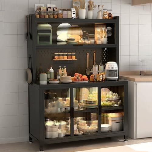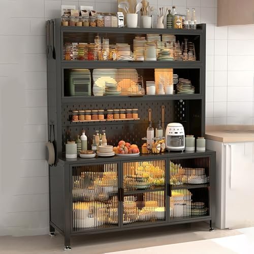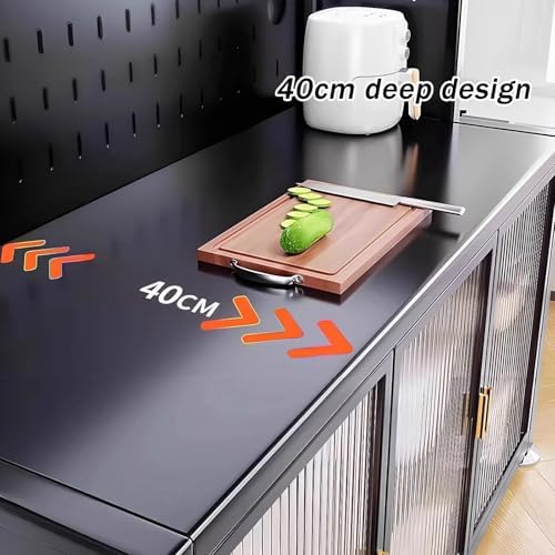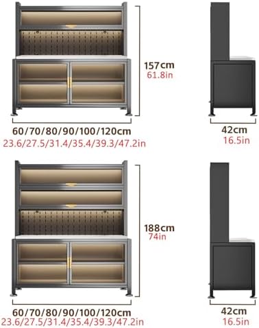 Introducing the JKGHK Kitchen Baker's Rack, designed to enhance your kitchen organization and elevate your cooking experience. This versatile piece serves as a buffet table, sideboard, or coffee bar station, making it an essential addition to any home. Featuring an adjustable bottom shelf, this baker's rack maximizes storage space, easily accommodating your pots, pans, ovens, and microwaves. With its ergonomic height, you can access your kitchen essentials comfortably, eliminating the need to bend over. Elegant handles ensure safe and convenient opening and closing of the cabinets, while raised guardrails on the top keep your items secure during loading and unloading. The raised base of the rack not only adds a stylish touch but also simplifies cleaning and maintenance, ensuring your kitchen remains tidy and organized. Available in various sizes (60/70/80/90/100/120x157/188x42cm), this kitchen storage cabinet fits seamlessly into different spaces, whether as a dining room sideboard or an entryway cabinet. Constructed from durable metal and available in modern gray or white colors, the JKGHK Kitchen Baker's Rack combines functionality with aesthetic appeal, making it a perfect fit for any decor style. Please note that this product may have a slight size variation due to hand processing, and colors may differ due to lighting and screen settings. The package includes one Kitchen Baker's Rack and accessories for assembly. Transform your kitchen with the JKGHK Kitchen Baker's Rack, where style meets practicality for a more organized and enjoyable cooking experience.