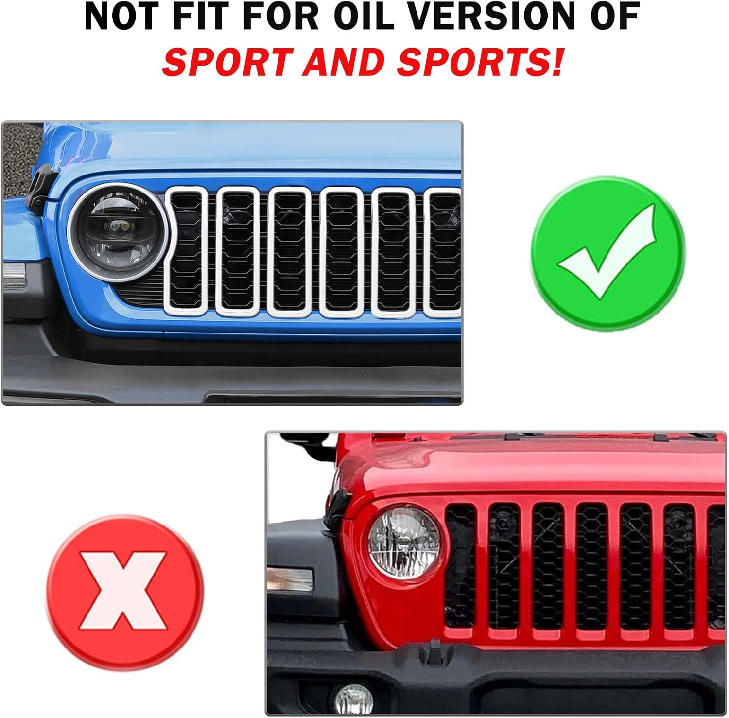 Model: -Compatible with 2024 Jeep Wrangler JL JLU. -Compatible with 2024 Jeep Wrangler 4XE. -Compatible with 2024 Jeep Gladiator JT. -Compatible with 2024 Jeep Wrangler Willys, Sahara, Rubicon. -NOTE: Not Fit for Oil Version of Sport and Sports!!! Product Information: -Color: Red -Material: ABS Package Includes: -for Jeep JL Grill Inserts*7 About Installation: NOTE: According to the numbers on the back of the product, install from left to right. 1. Using alcohol, clean the surface and keep it dry without water and dust. 2. It is best to heating the tape with hair dryer or baking gun, then tear off the double-sided tape behind it and stick it to the corresponding position. 3. Press firmly for a minute or so to better secure the lid in place. High-quality After-sales Service -RAZPOY team pays great attention to customer experience, if you have any questions about JL mesh grille inserts, please feel free to contact us, we will try our best to solve it for you and provide the best after-sales service.