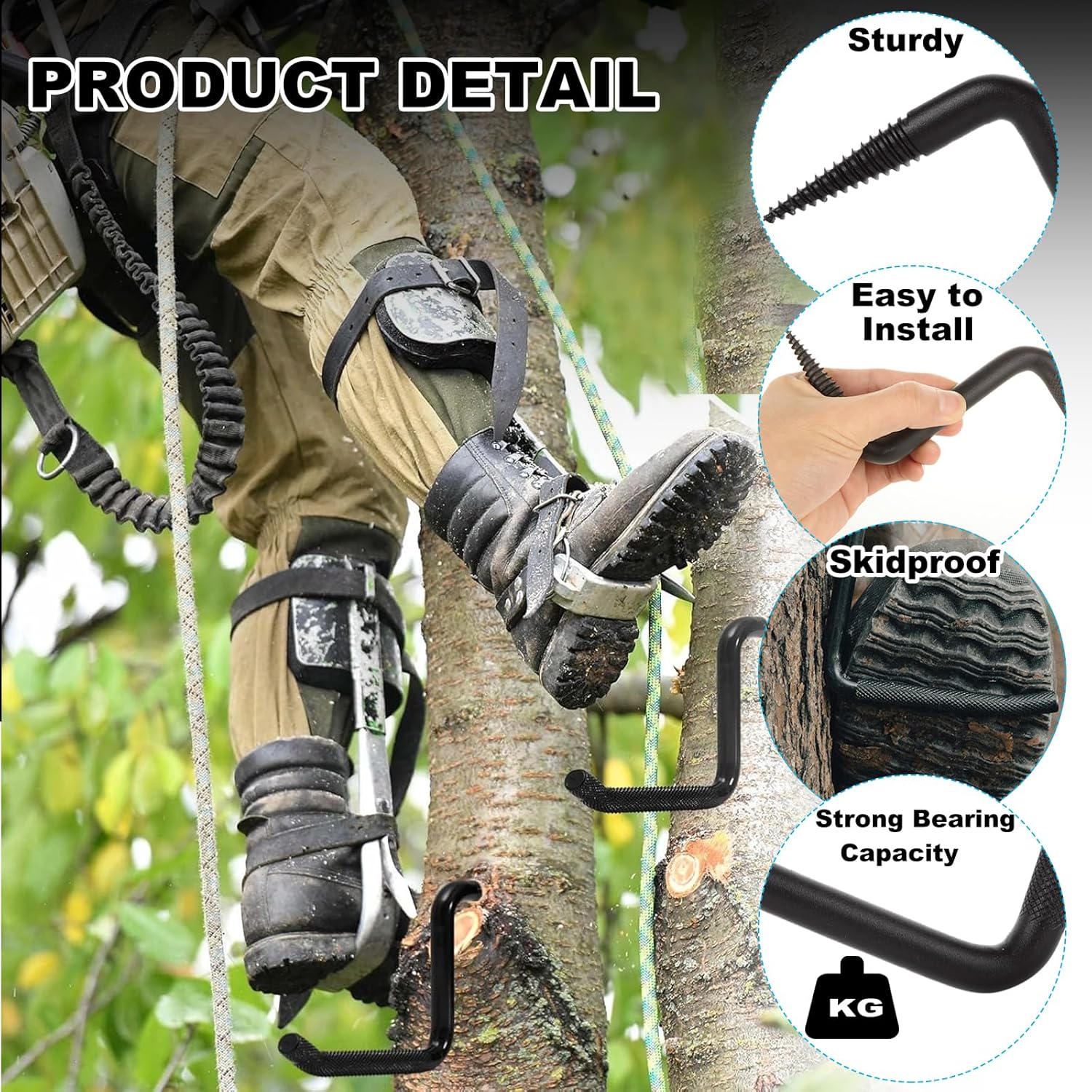 | Warranty Description | JMIATRY three steps have a longer steps length of 5-inch, providing a comfortable and secure foothold while climbing trees |