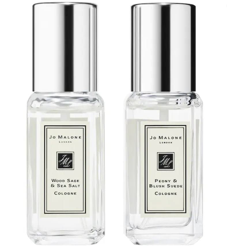 A set containing two travel sprays in Wood Sage & Sea Salt and Peony & Blush Suede. Alive with the mineral scent of the rugged cliffs mingled with the woody earthiness of sage, this fragrance is lively, spirited, and totally joyful