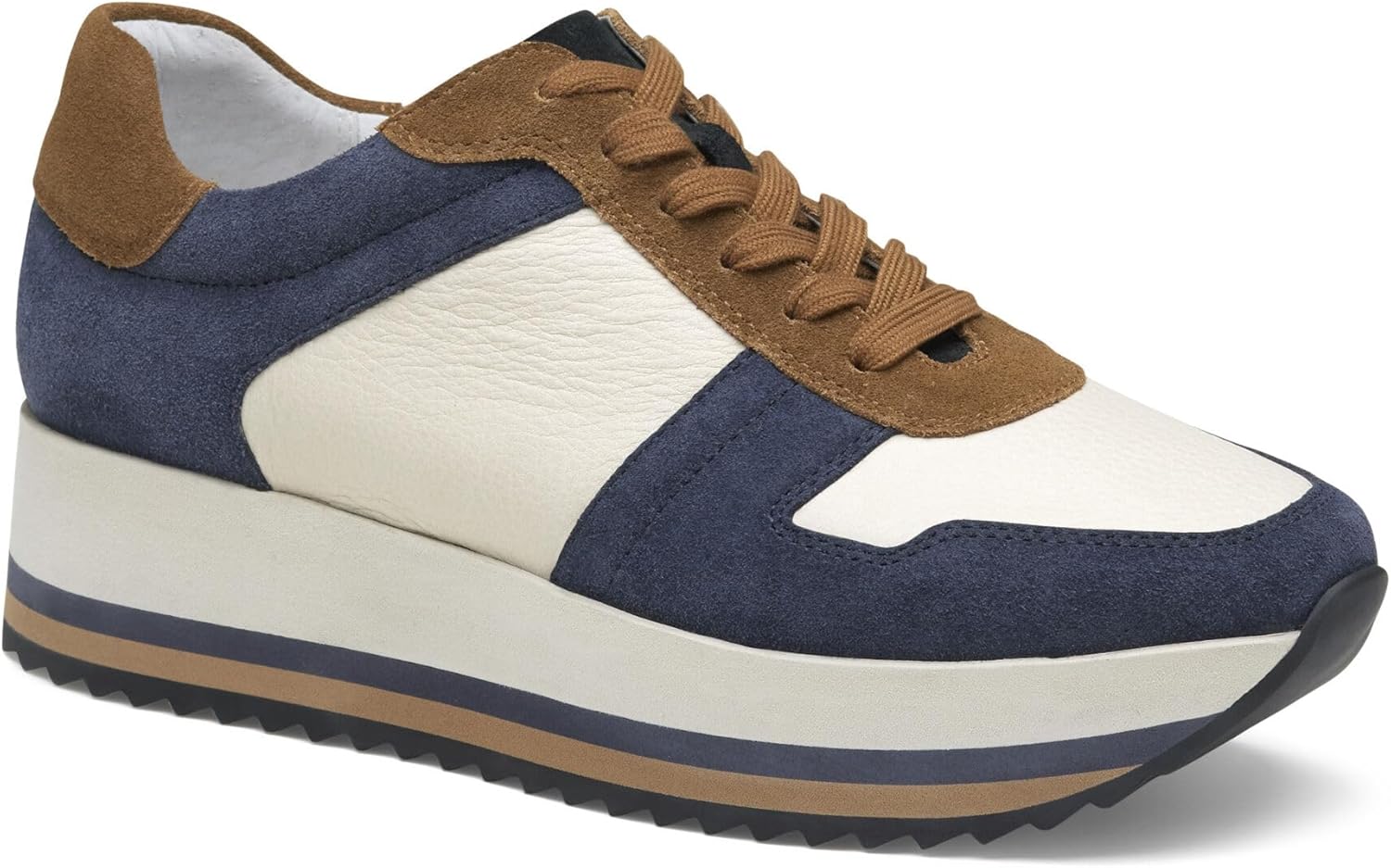 The Johnston & Murphy Gracie Color Block Lace-Up Sneaker effortlessly combines sophisticated style with exceptional comfort. Crafted from a blend of suede and leather, this sneaker features a luxurious leather and microfiber lining that enhances its plush feel. The lightweight TRUFOAM footbed provides superior cushioning for all-day wear, while the lightweight EVA platform, with its 1.75-inch wedge, offers a subtle lift without sacrificing comfort. Designed with a durable rubber sawtooth outsole, this sneaker ensures reliable traction and stability. Perfect for elevating your casual outfits with a touch of elegance, the Gracie Color Block Lace-Up Sneaker delivers both form and function in every step.