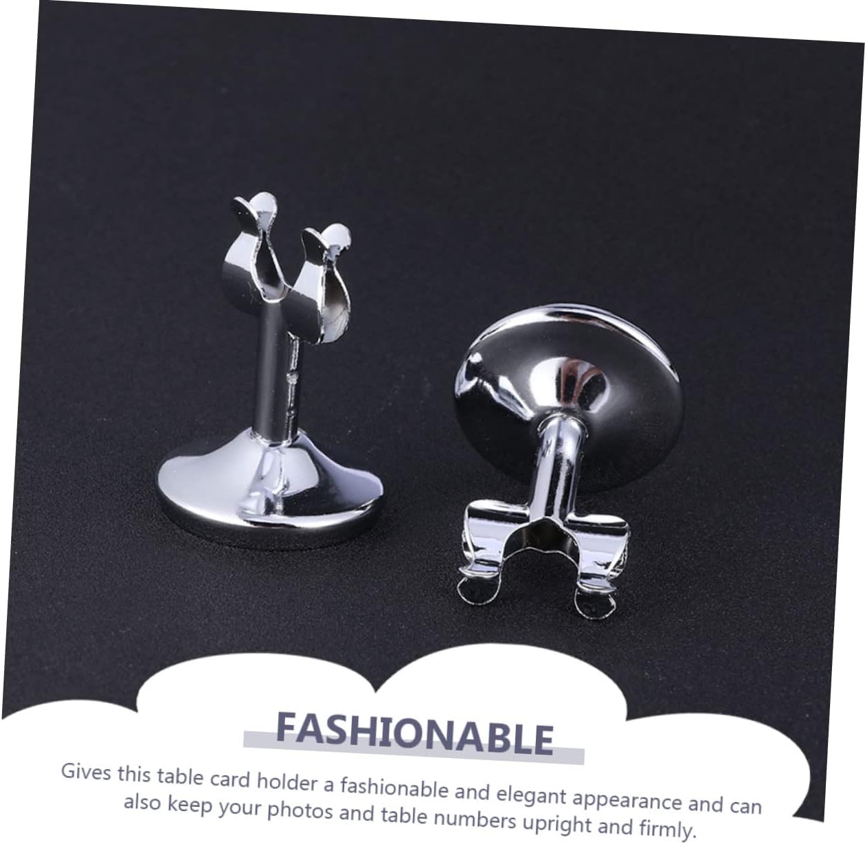 Package List 10 x Card Holders Characteristics -Material: Stainless steel Restaurant Accessory -Size: 5.00X3.70X3.70cm/ 1.97X1.45X1.45inch Delicate Number Holders -Color:Silver Multi-function Card Stands -Table number clip holder keeps your table number upright and stand up steadily Table Number Stands. -Perfectly accompanies decorative centerpieces, ornaments and elegant table settings Delicate Number Stands. -You can send this card holder to your friends who really need this tool Multi-function Card Holders. -Serve as memo, table number, table photo, note, paper, name card clip, menu clips, pictures Stainless Number Stands. -Great for writing down unexpected office tasks; Perfect for wedding, engagement, anniversaries, Christmas table card holders Delicate Card Stands.Goods InformationStainless Card Holders Applicable to many scenes and important occasions.Delicate Number Stands Easy and convenient to use, great for displaying table numbers menu information and notes, etc.Stainless Card Stands Thicken and weighted base is designed for stable placement.Card Stands This product is table cards stand, adoption of premium and stainless steel material