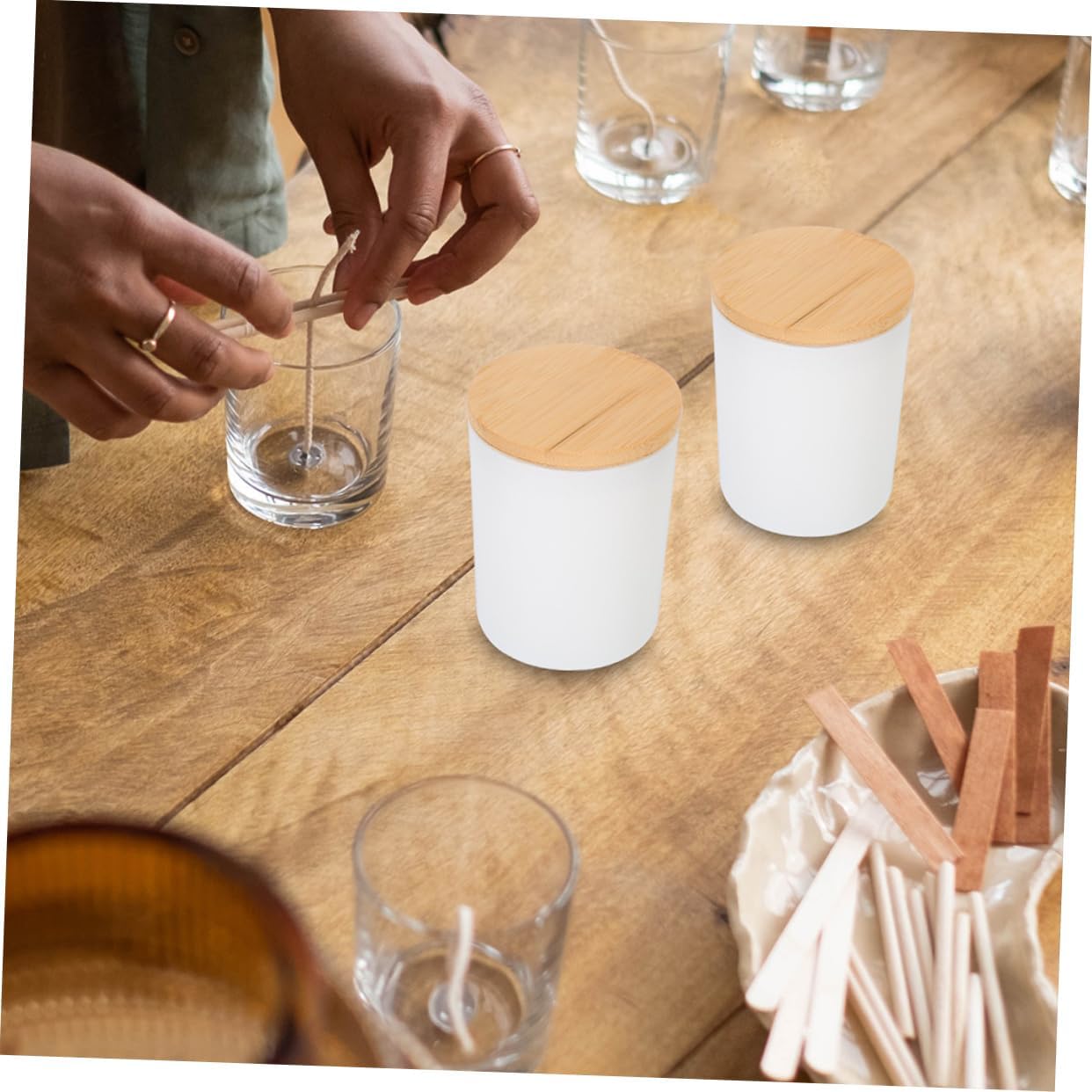 Package Include 6 x Cups 6 x Lids Features -Color:Grey jars for candles -Size:9.50X6.80X6.80cm/3.73X2.67X2.67in small glass jars -Material:Glass, wax jars -It can be widely used to make candles and DIY cosmetics, or store DIY creams, balms, salts, samples, teas, beads, , etc. To meet your needs mini jars with lids. -Made of glass material, with a lid design, durable for use jars with lids. -A modern styled candle jars with a clear look, a great decor for your home or desktop jars with lid. -These empty glass jars can be widely applied to making candles and DIY Cosmetics candles making kit. -When you use it, the light from the candle is very uniform, giving you an excellent visual enjoyment mini jars.Goods Descriptioncandles making kit This item is a DIY Candle Making Jar, made of glass material with a lid, durable for a long term use.jars with lids They are not only can be used as candlestick, also can be used as a household decoration or storage small items.empty storage jars for candles DIY candles for elegant and luxurious home decor